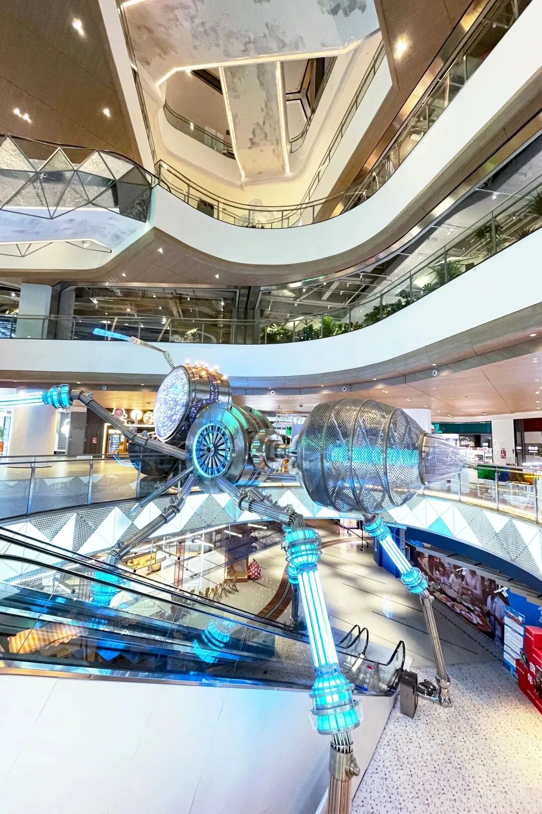 赛博朋克文化逐渐进入我们的生活,深圳云城万科里在一楼与负一楼之间打造了巨型赛博朋克蚂蚁艺术装置,成为商场的经典标志之一,吸引众多消费者打卡观赏。装置拥有保留了蚂蚁经典特征的机械风庞大外形,充满了未来科技感的骨骼笼罩着扶梯,带给顾客新奇的感官冲击体验。