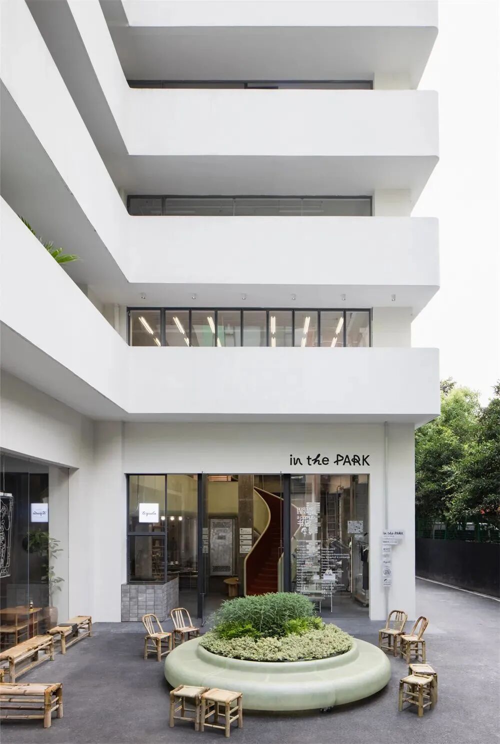 in the PARK被称为是开在“公园”里的迷你百货。该项目是一个多品牌的集合店铺,位于上海安福路。在设计方面灵感主要选自中国传统公园。从入口前的花坛、复古竹凳到内部的滑梯、曲径通幽的小道,以及通透的室内空间与开敞的阳台,用现代化的方式重新演绎公园。