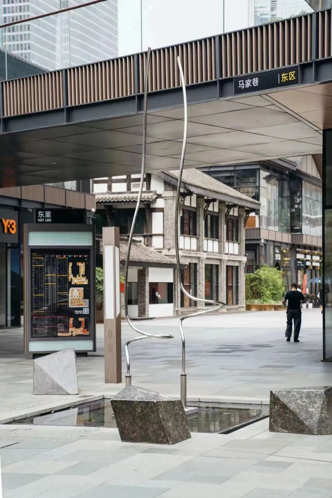 在业态布局上,成都远洋太古里以大慈寺为中心分为内外两个层次,外层为“快里”,由三条精彩纷呈的购物街贯通东西两个聚集人潮的广场,众多国际品牌如爱马仕、卡地亚、Gucci以独栋或复式店铺完整展示旗舰形象,提供畅快淋漓的逛街享受。内层为“慢里”,围绕大慈寺精心打造的慢生活里巷,以各种生活方式店铺和艺术装置互相穿插,营造了大片开敞的公共活动空间,让到来的人悠闲自在享受生活的同时,欣赏不同的人文艺术之美。