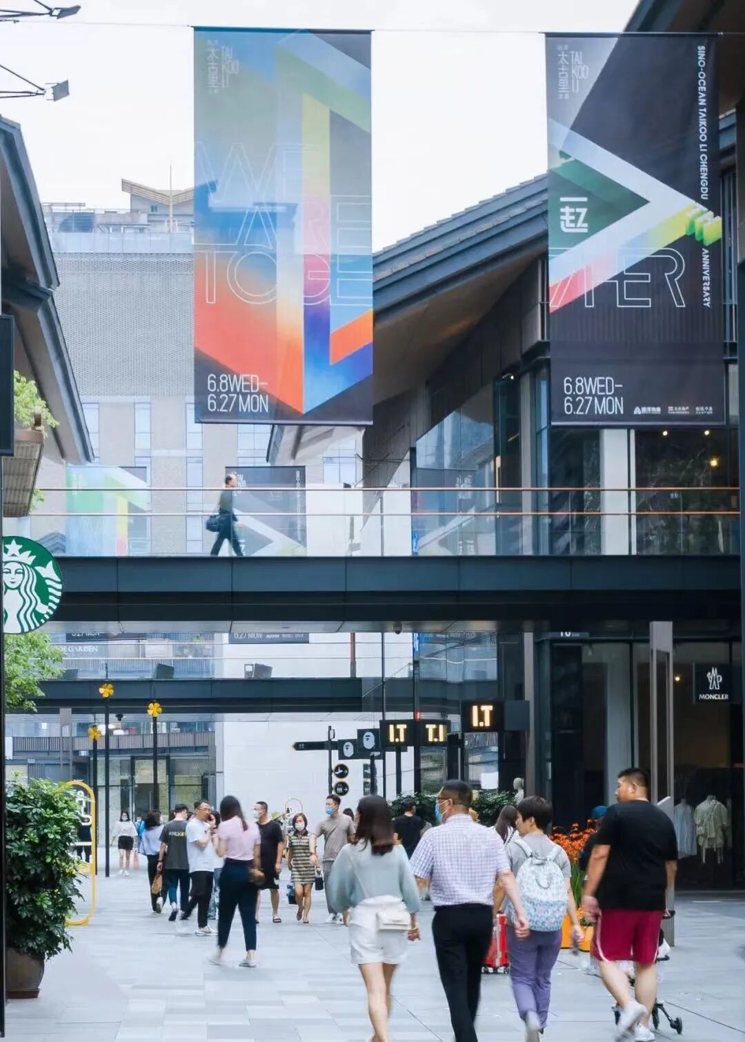 成都远洋太古里把历史古韵、人文雅致、艺术潮流和街巷的购物休闲氛围交融碰撞,呈现出一个丰富多彩、拥有不同层次、充满生活气息的公共空间,在地下与地面空间的融合过程中,通过精心挑选的品牌和业态,将多种功能空间、环境和人的行为活动组合并整合,实现地上地下空间的共融;无论市场如何变化,这种和谐共融、极具包容性的商业项目总有一方天地。