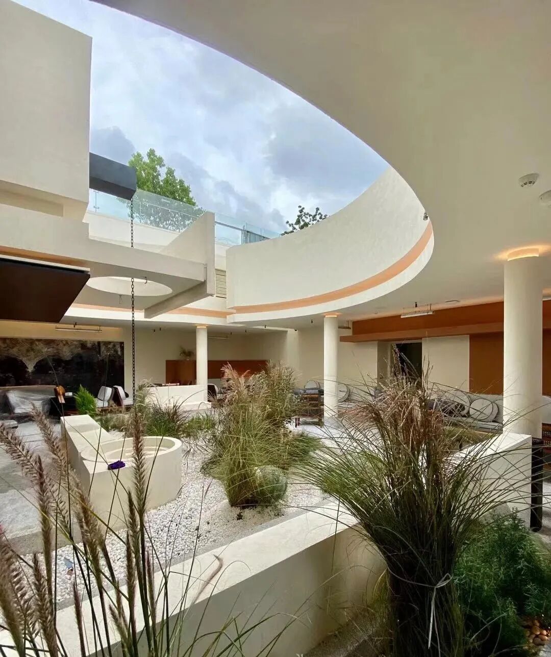 空间设计应造型亮眼的透明度较高的铝网,打造出不规则、蜿蜒的廊道,分隔内外空间,方便充分融合生态绿植和自然采光,创造出可供消费者放松的公共空间。