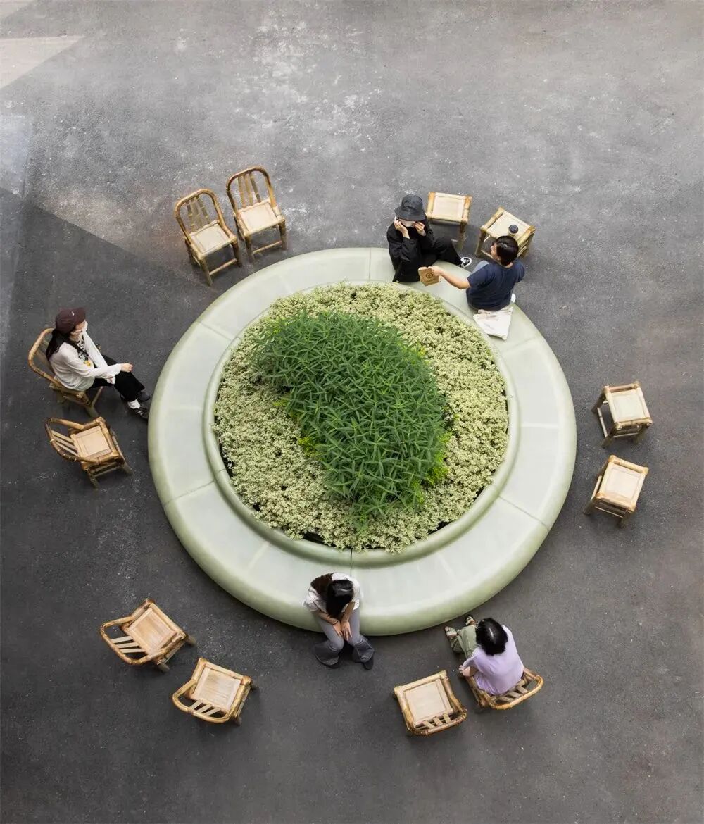 “一边公园”,室内也能逛公园门前巨大的花坛占据着主要的入口景观。圆润的体态也是来自中国传统文化对圆的美好寓意。