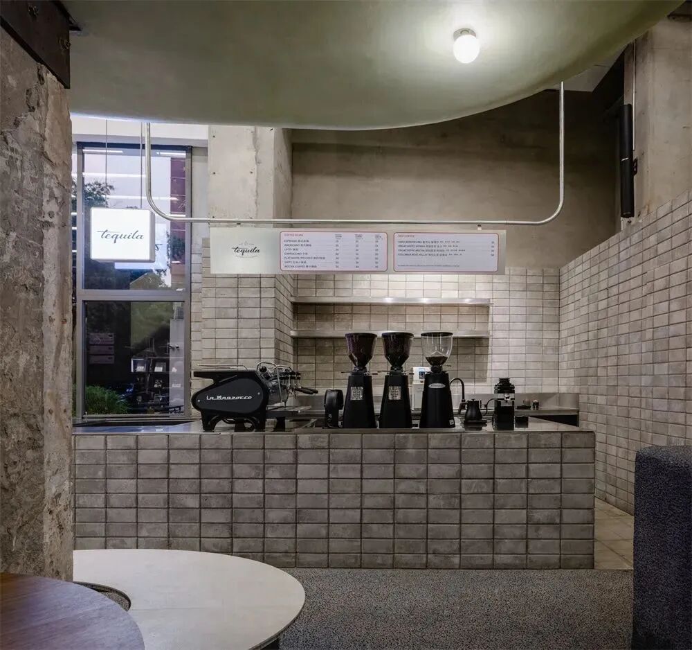 项目大量运用的清水混凝土,与露天空间外具有原始风貌的水泥承重梁柱相互呼应。清水混凝土的光滑为顾客带来舒适的感觉,看似坚硬却包容,又看似冷酷却柔和,彰显出项目所设计者想表达的“新生活方式”的态度。