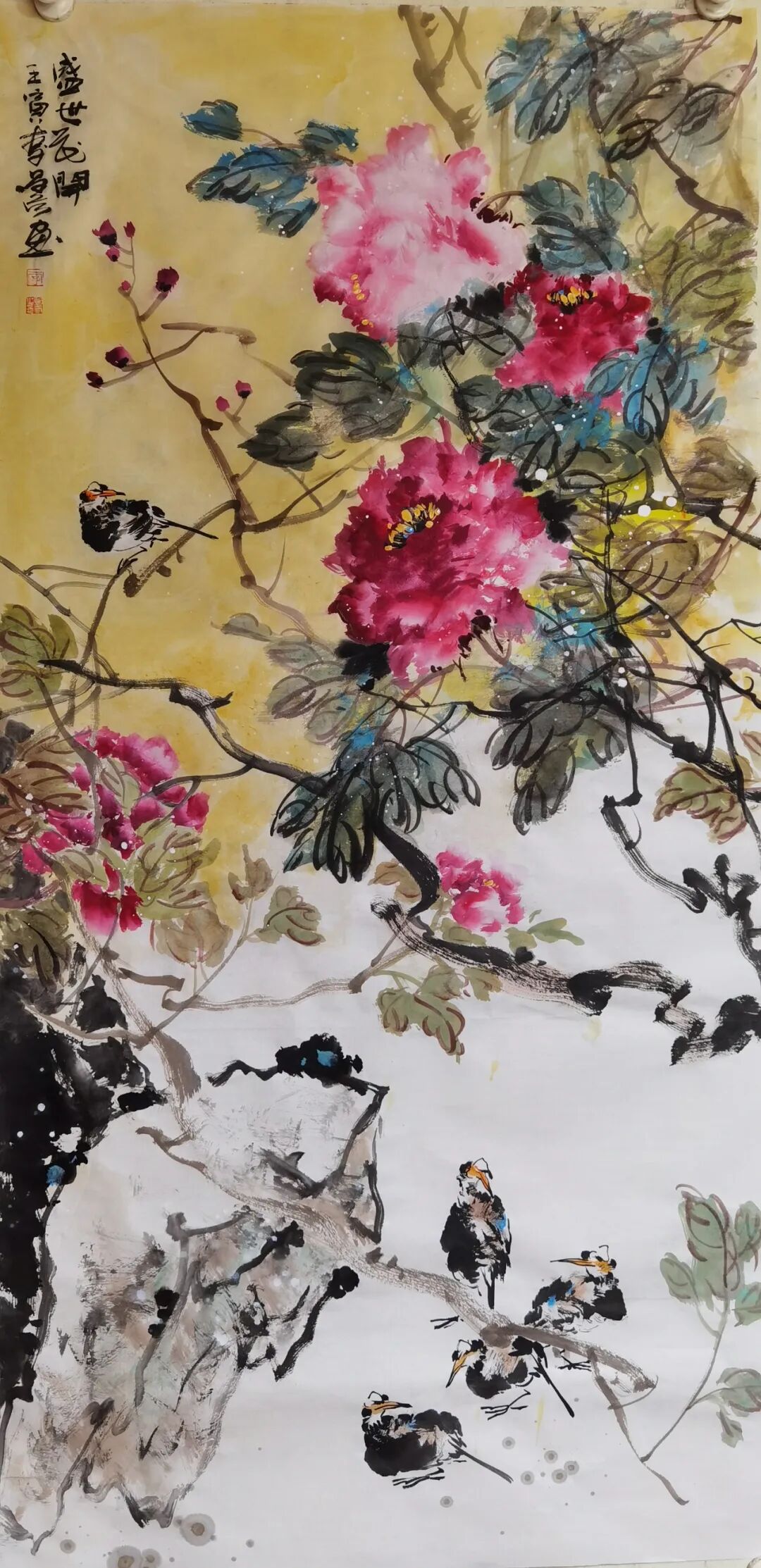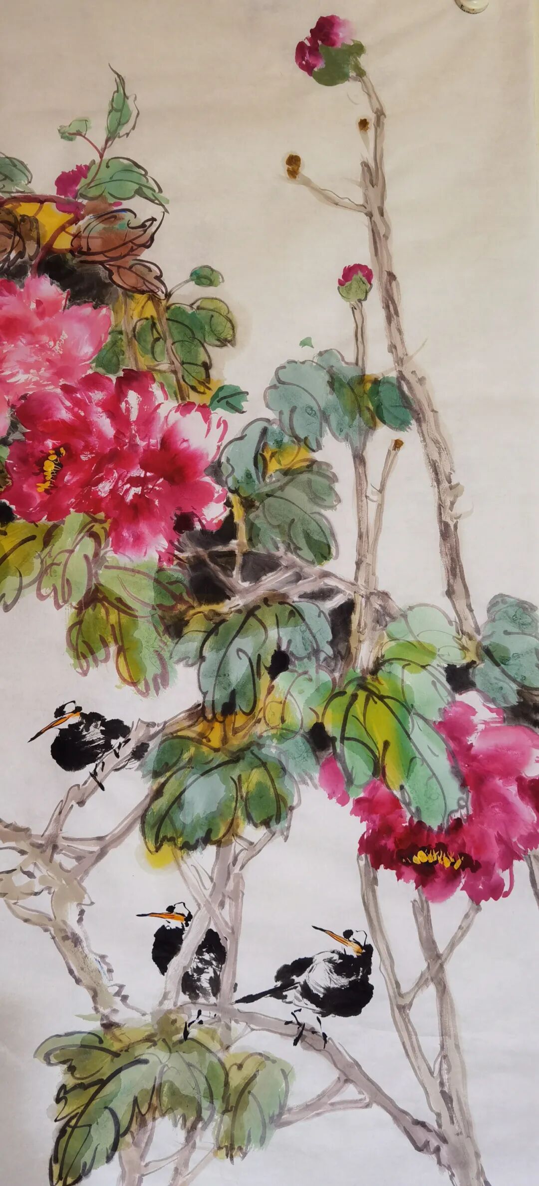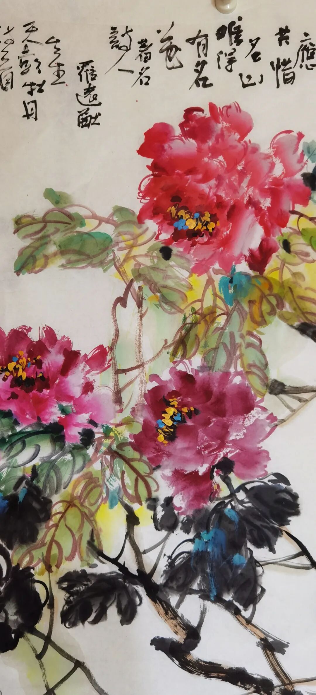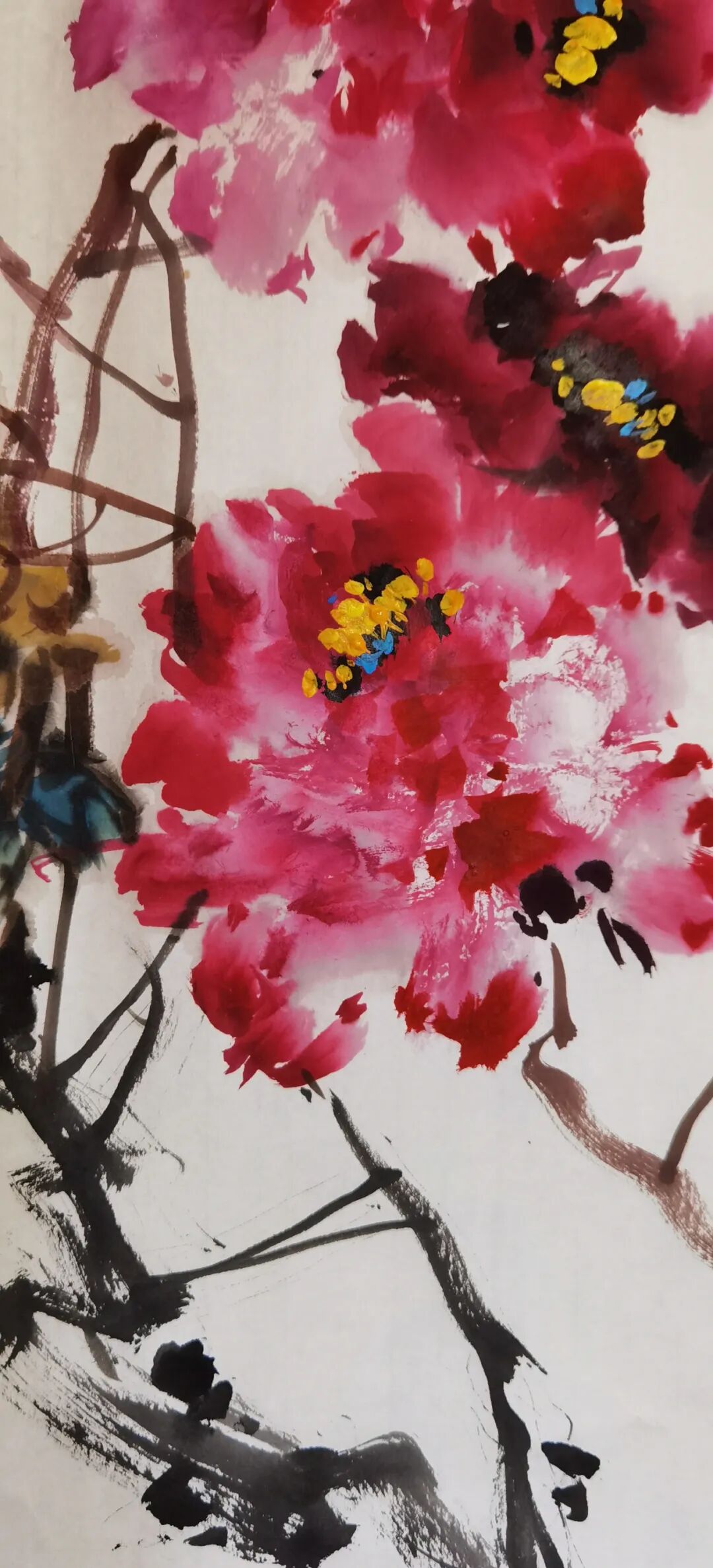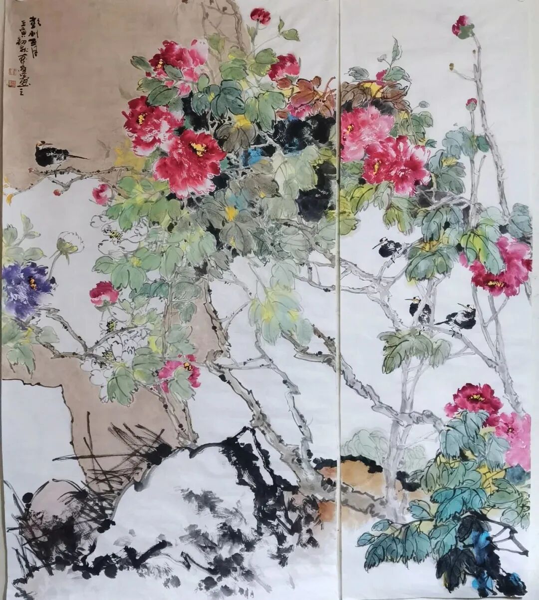 牡丹是我国的国花,是富贵之花,雍容华贵,呈现出花团锦簇,姹紫嫣红,国色天香的丽质。牡丹历来为文人雅士,画家诗人所喜爱,作品创作佳作不断,文化传承历久弥坚。在中国美术史上,钟情于牡丹创作的画家不计其数。近代以来,赵之谦、任伯年、吴昌硕、齐白石等都是牡丹写意创作的大家高手,他们独具个性语言的写意牡丹创作,拓宽了牡丹题材的审美个性,推动了牡丹艺术的向前发展。同时也为后继者们的学习和发展提供了可咨借鉴的蓝本。要画好牡丹,最基本的艺术技巧之外,文化修养的提升和审美意识的提升也是关键。因为艺术创作不仅仅只是为了悦目,还要润心启智,有文化知识的含量。要从表象的真实走进艺术的真实,进而通过个性的笔墨追求获取滋养心灵的品性。显然,艺术的创作不应该是以完全物象的真实呈现其创作的终极目的的。而是要将客观物象主观化,客观对象情感化和精神化。而凡此种种的高度,都在于创作者自身的修养和高度,在于创作者艺术和非艺术选择的自我推动和价值判断。一个创作者,只有将艺术技艺与文化高度结合起来,他的作品创作才具有生命力,才会传导出人性的精神的光辉。