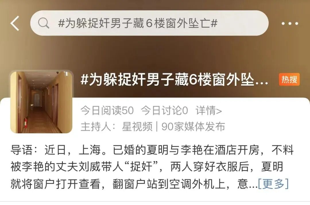 然而等来到妻子与情夫所在的6楼房间却一无所获,原来夏某在敲门声起时就打开窗户意图通过空调外机管道滑下脱身,却不幸坠楼身亡。