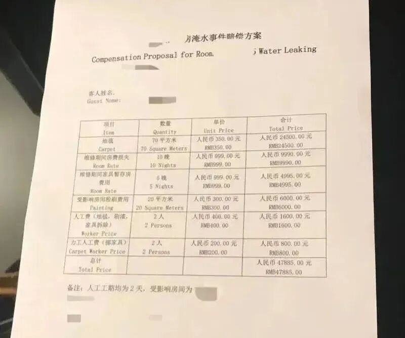 这种情况下,因客人失误导致酒店受损自然是要赔偿的。不过,随后酒店方核实完毕后出具的索赔方案,却让双方一度陷入纠纷。