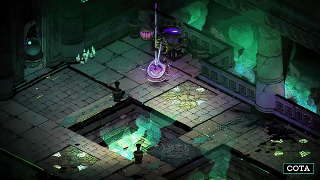 而像下图所示,《黑帝斯》中更是用了很多特效手段来烘托界面动效中的特别质感: