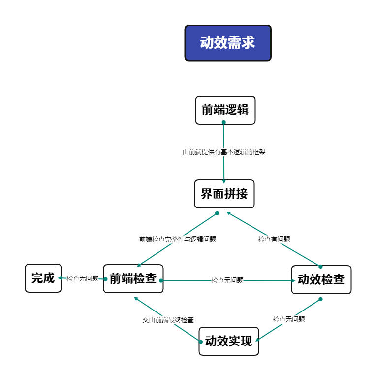 这个流程是构成整个项目周期内动效开发流程的最小单位。如果这个流程一直没办法确立,将会导致全局更加混乱。