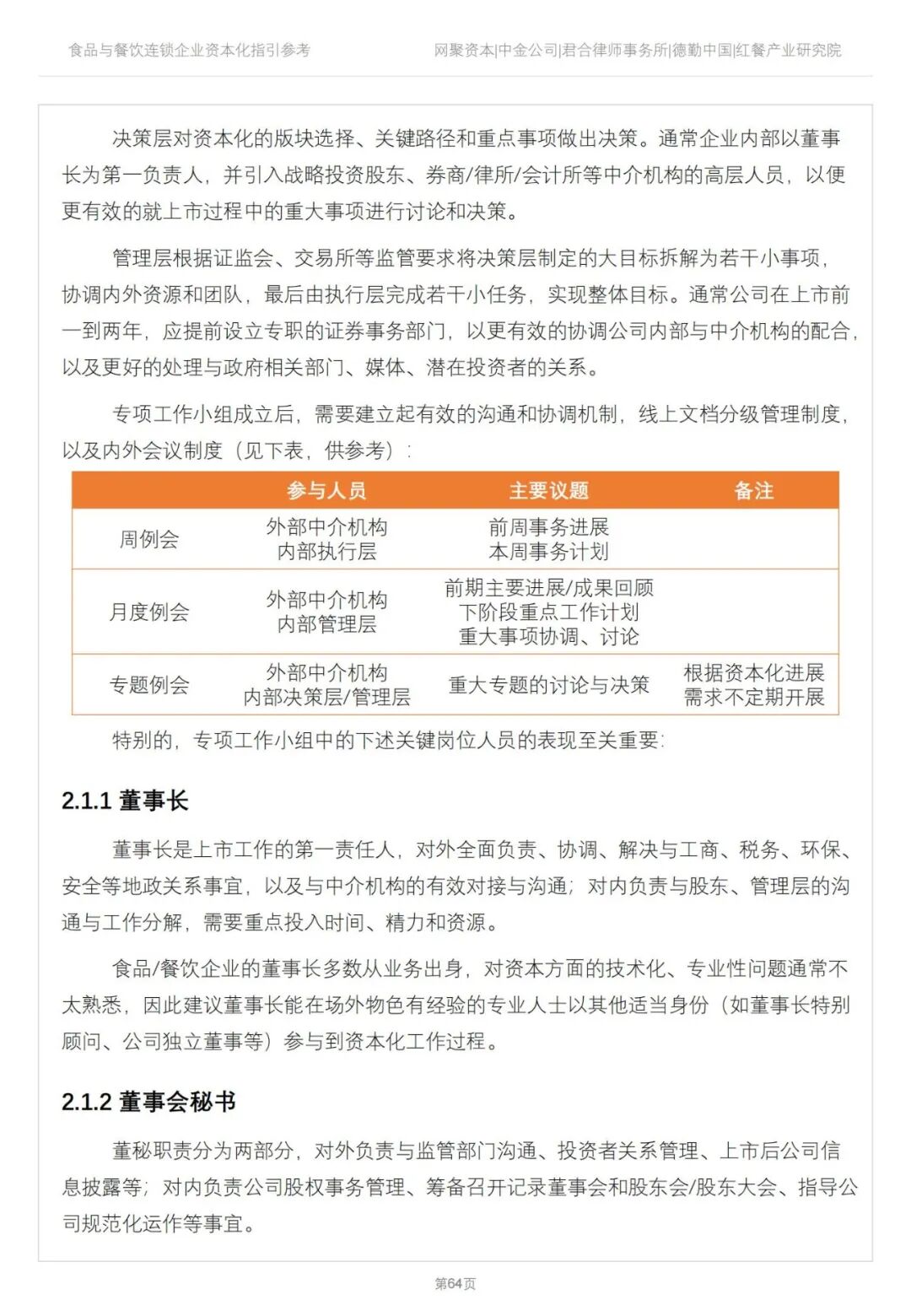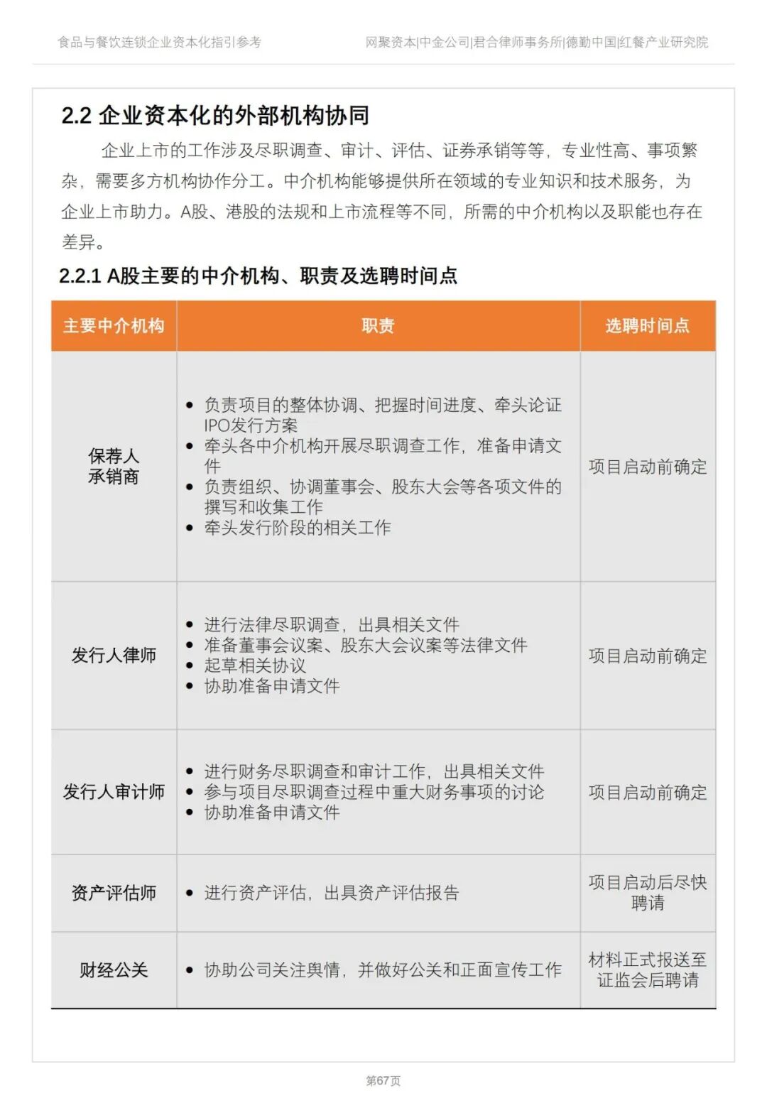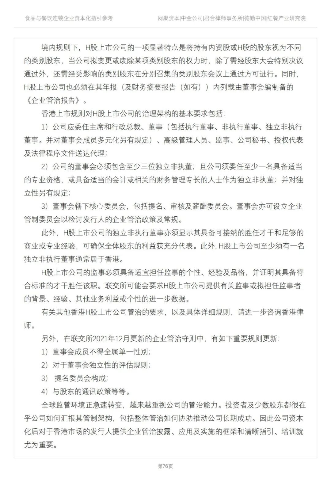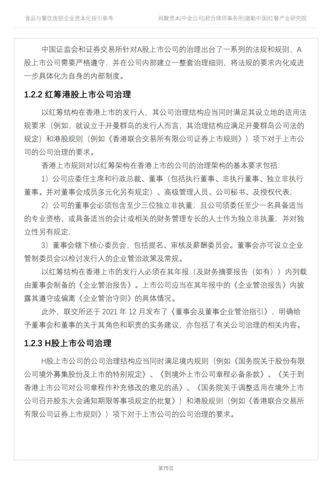 *以上内容出自由网聚资本、中金公司、德勤中国、君合律师事务所、红餐产业研究院推出的《食品与餐饮连锁企业资本化指引参考手册》。