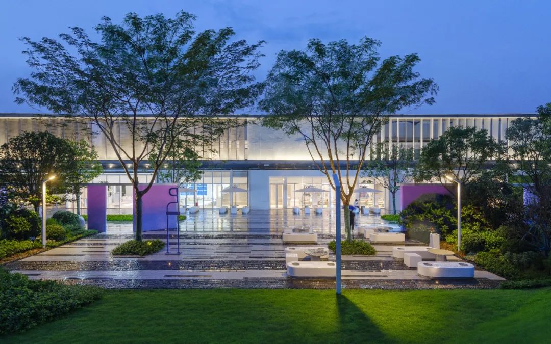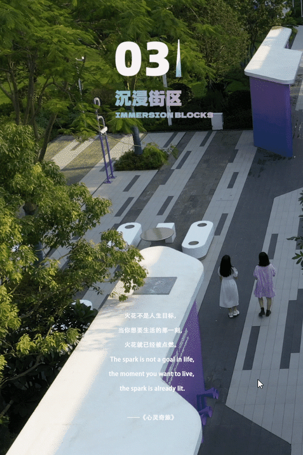 The overall street creates an immersive scene. The grey and white pavement and white landscape soft outfit create a fresh and clean leisure block. Also reserved for the subsequent commercial layout of the event space.