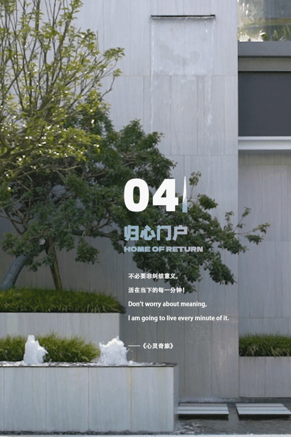 好的生活街区公园一定需要回归居住环境的融合。在最终回归的居住区域,利用项目本身8M的高差,打造灵动富有变化的归家路径。寻阶梯而上,步履之间,在这里以构建立体森域的归心生活。