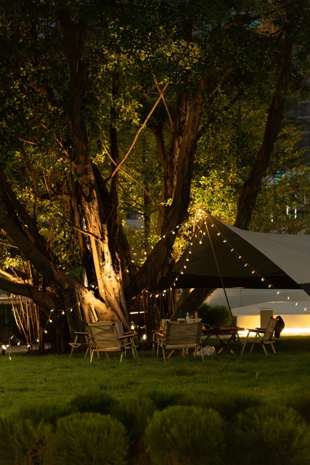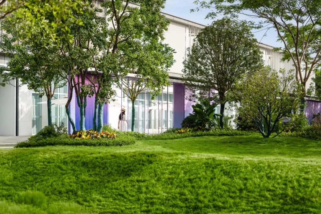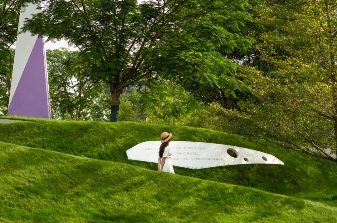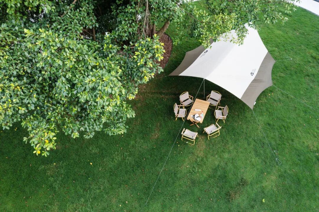 In the oasis space under the earth art, all kinds of outdoor activities grow, either in the forest or under the trees, with the grass slope as the background, the atmosphere of chill is everywhere.