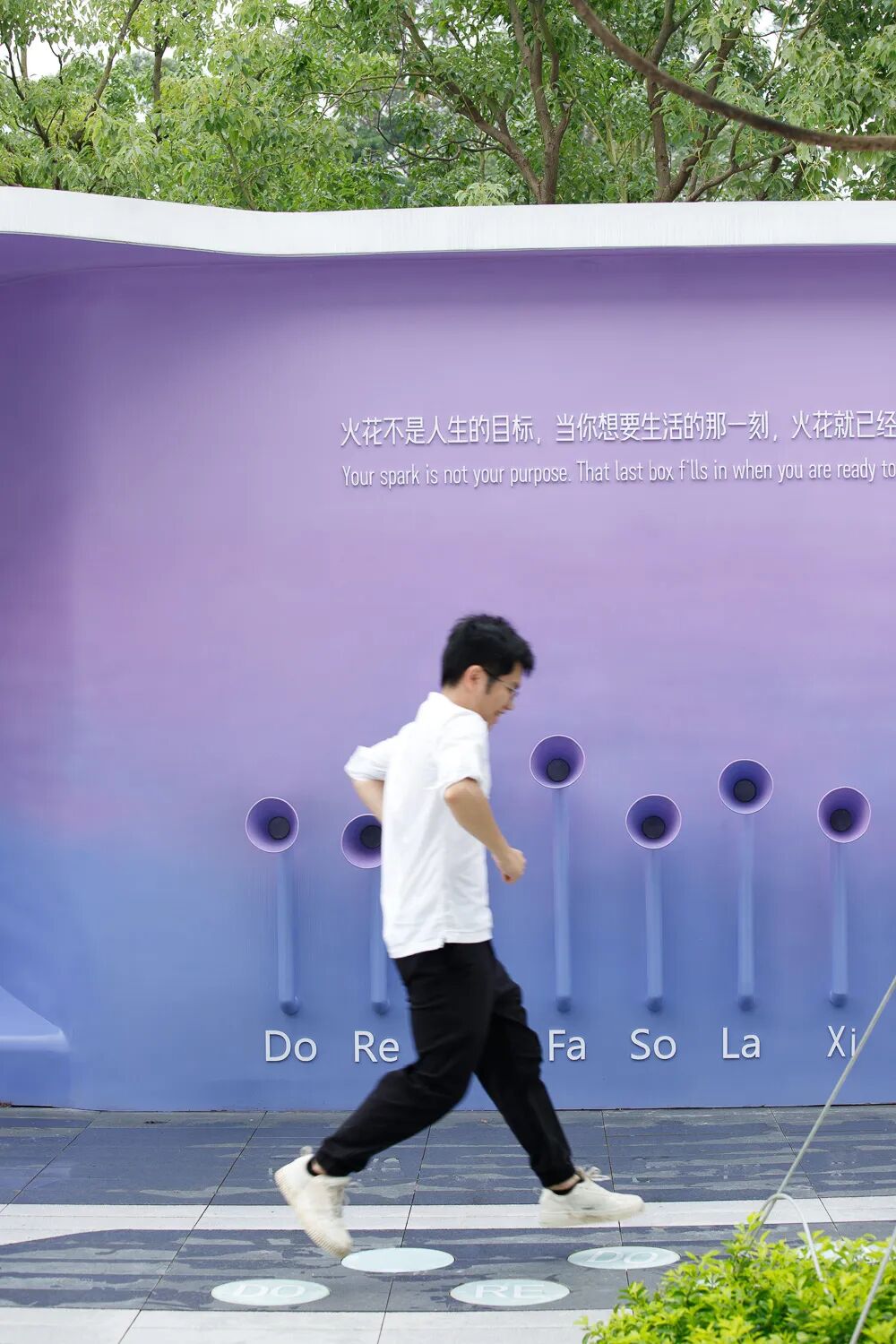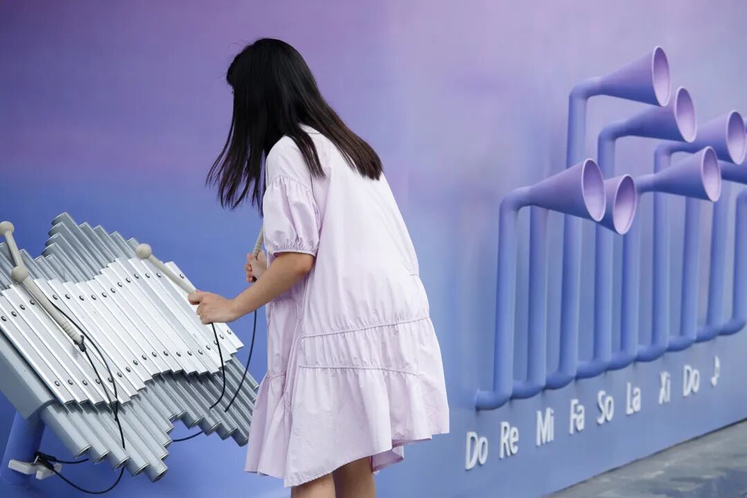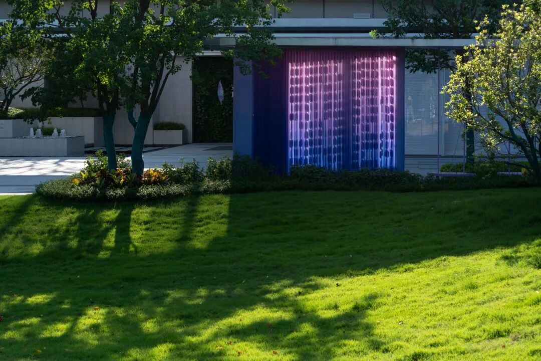 On the periphery of the building, we intend to design a fashionable leisure community. Multi-functional interactive scene installation, these blue and purple matching installation pavilion gallery shadow, organic integration of strong lines of the building, through the leisure and relaxed outdoor rest place, so that the scene and the building mutually map the outdoor space full of activity. The blue and purple glow of the night continues to permeate the atmosphere of quiet dreaminess. The pedal with its own notes becomes a creative space for free performance. Navigate the fence and undulating pedals to discover different angles of interaction.