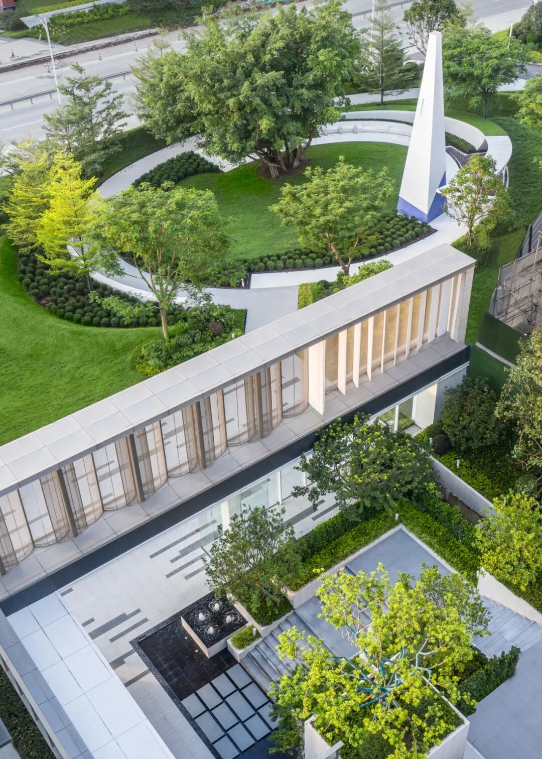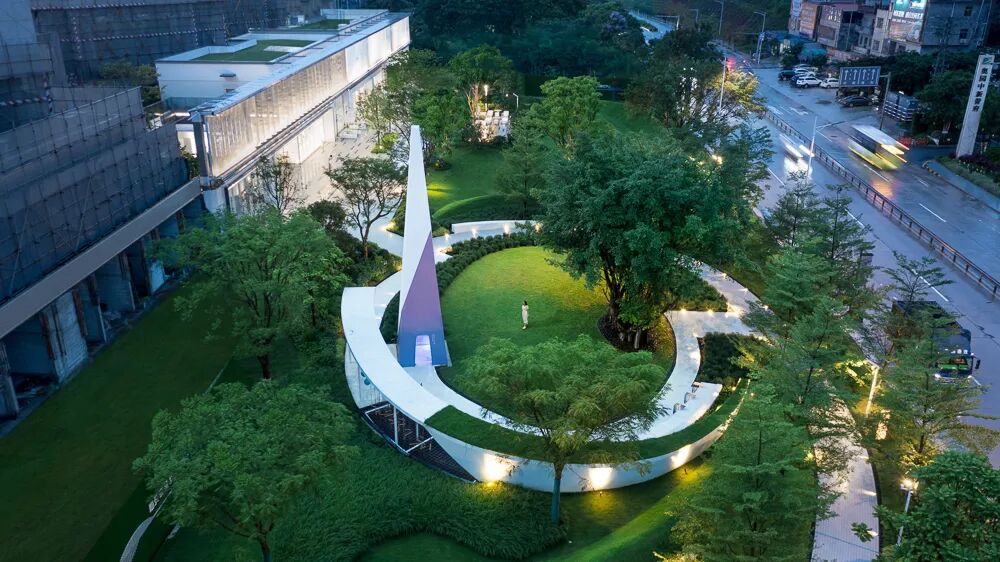 The story revolves around the native banyan tree. There is designed with a circular composition, preserving the banyan tree of the original site and combining the circular lawn as an open space. The design creates a "kaleidoscope of strange Travel" through the ring division of the square floor and the unique white lighthouse shape. The boundary steps of the terrain are slowly raised and the activity area for children is shuttled and climbed, forming a dynamic scene of activities under the tree. An event plaza for sitting and playing, which can also serve as a gathering place for outdoor curatorial events.