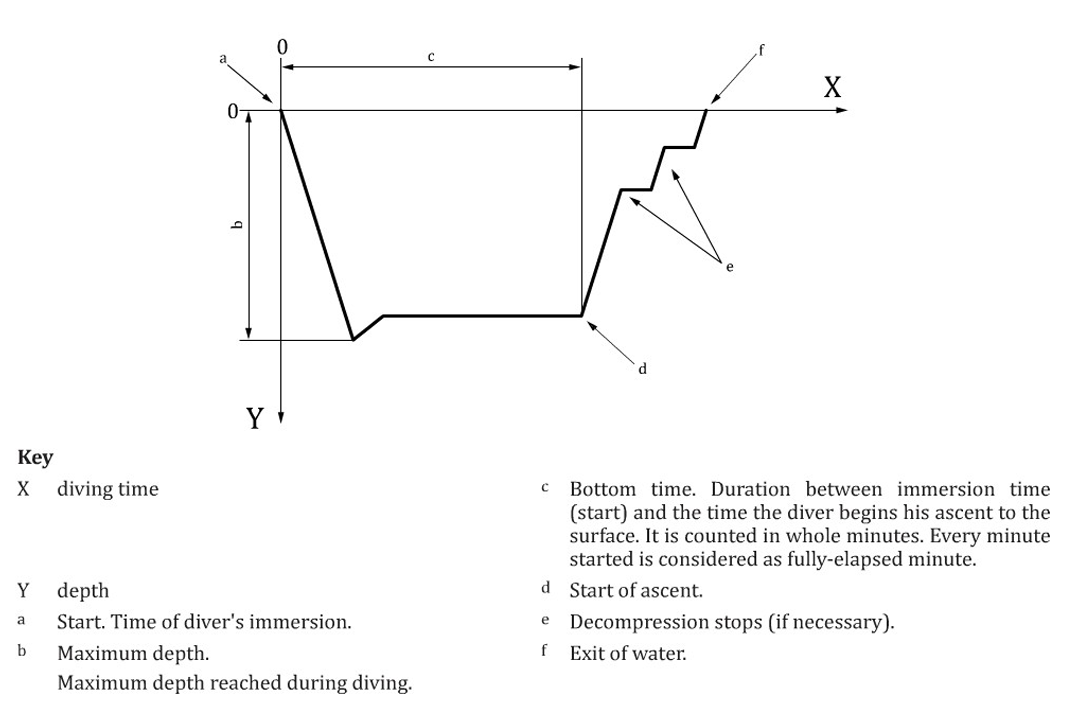 潜水阶段图示,升潜会随深度而增加次数及停留时间