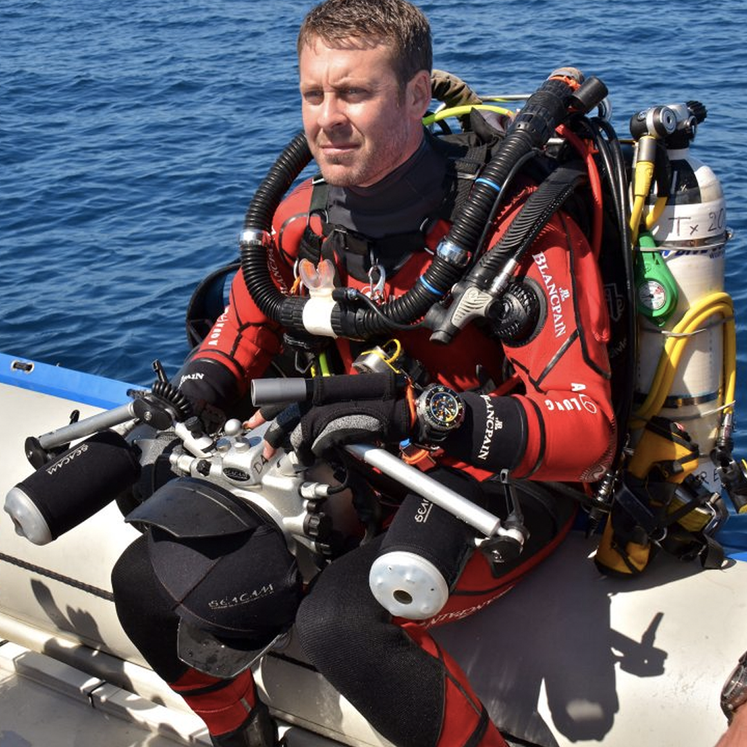 当然,劳伦·巴列斯塔德这次潜水活动佩戴的是宝珀五十噚潜水表,而且是具有机械深度计的X噚,X噚可以精确量测90米水深,并且这枚防水深度300米的潜水表也具有排氦阀门设计。其他几位潜水队员同样佩戴宝珀五十噚潜水表。