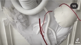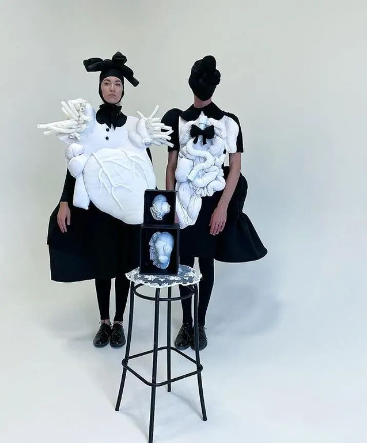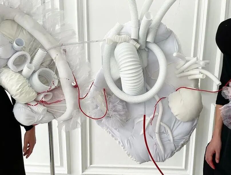 Venera Kazarova 用纸、织物、颜料等材料模仿心脏跳动、胃部活动、血液流动等人体内器官运行的感觉,充满了戏剧性的荒诞效果。