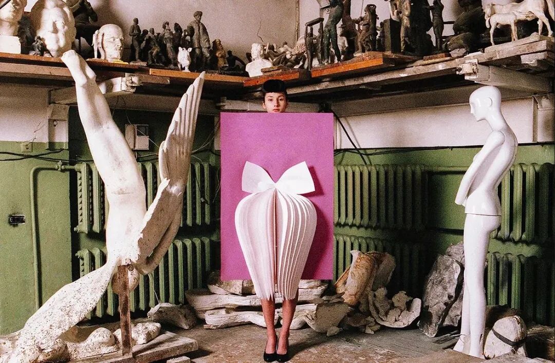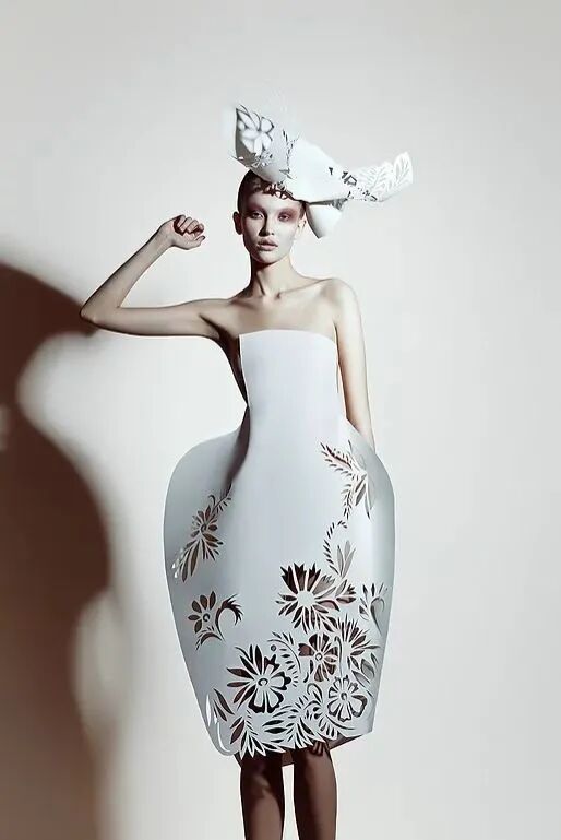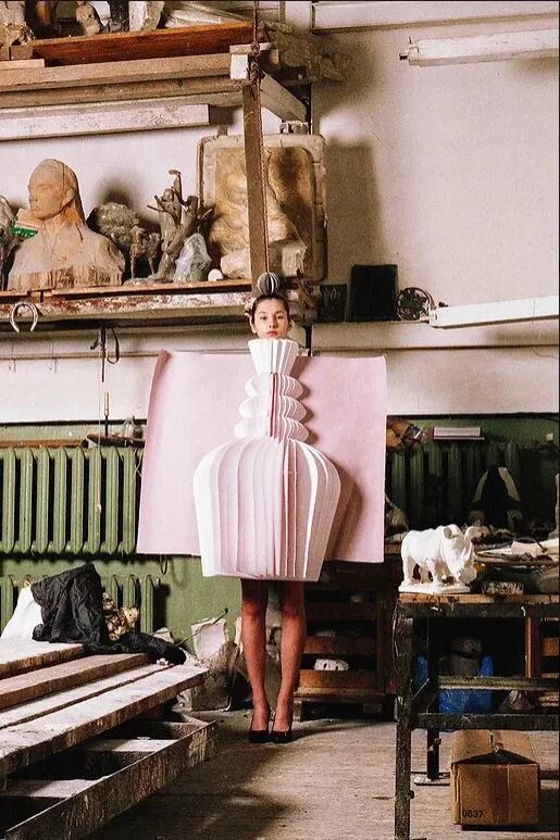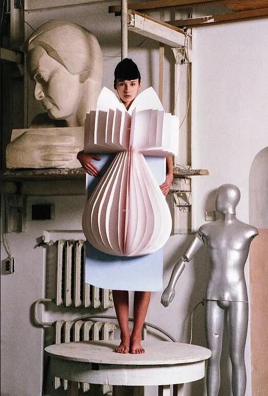 Venera Kazarova 将自己定义为时尚艺术家,她对纸与织物抱有无限热爱,喜欢将这两种材料与塑料用具、聚乙烯甚至是手能触碰到的一切材料结合起来,她对复古的东西尤其热爱。