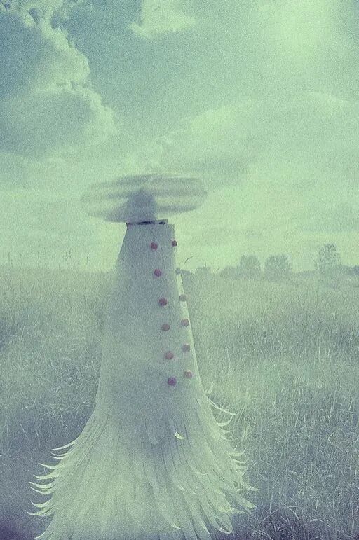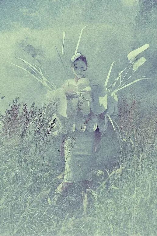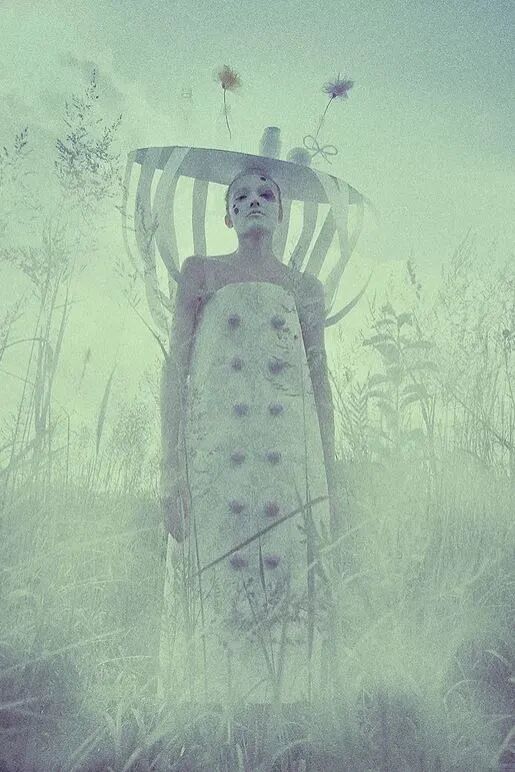 How to disappear completely 仍然是 Venera Kazarova 与摄影师 Ira Bordo 和化妆师 Olga Glazunova 合作完成的一系列风格照片,这个系列中的连衣裙是由画纸、包装纸、塑料瓶和壁纸制成的。