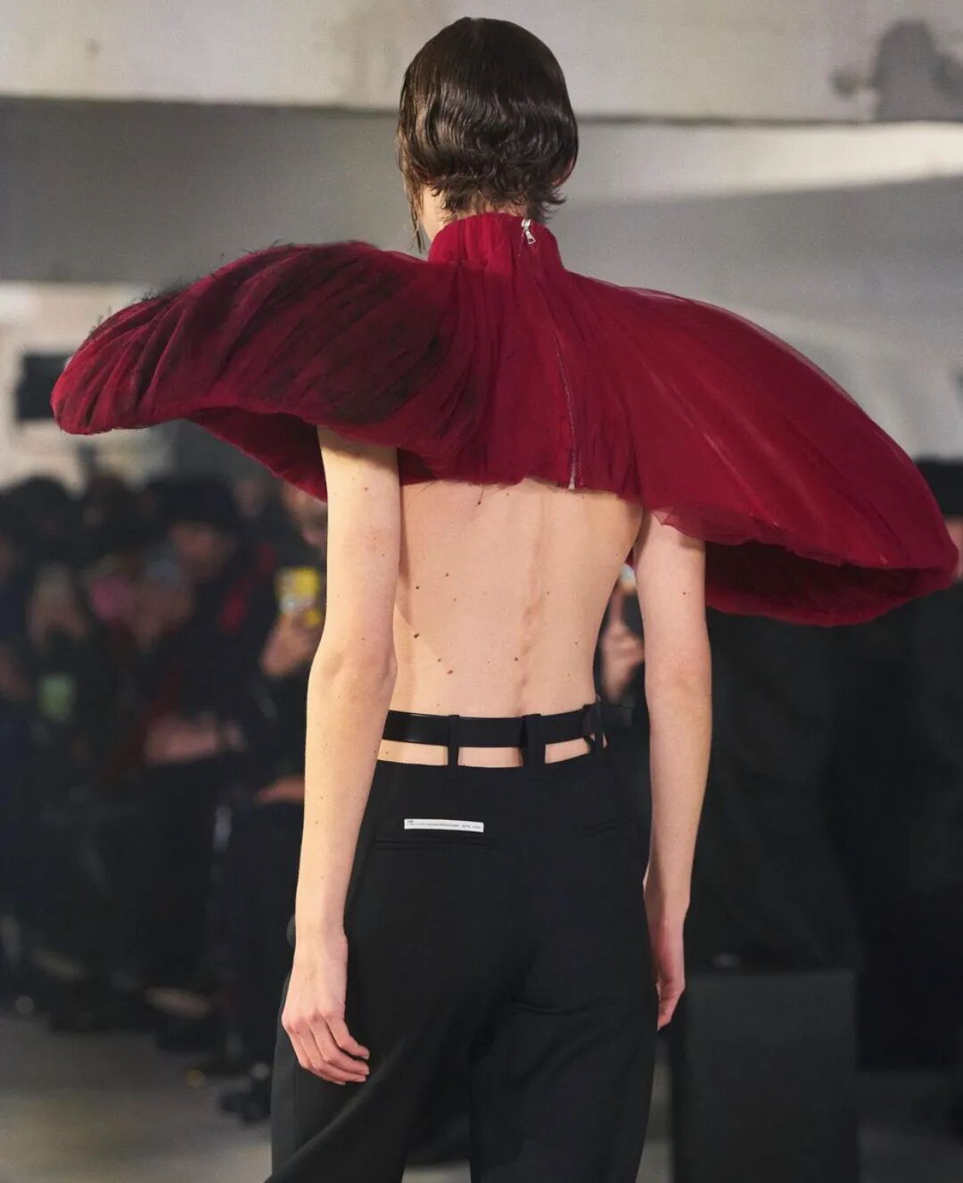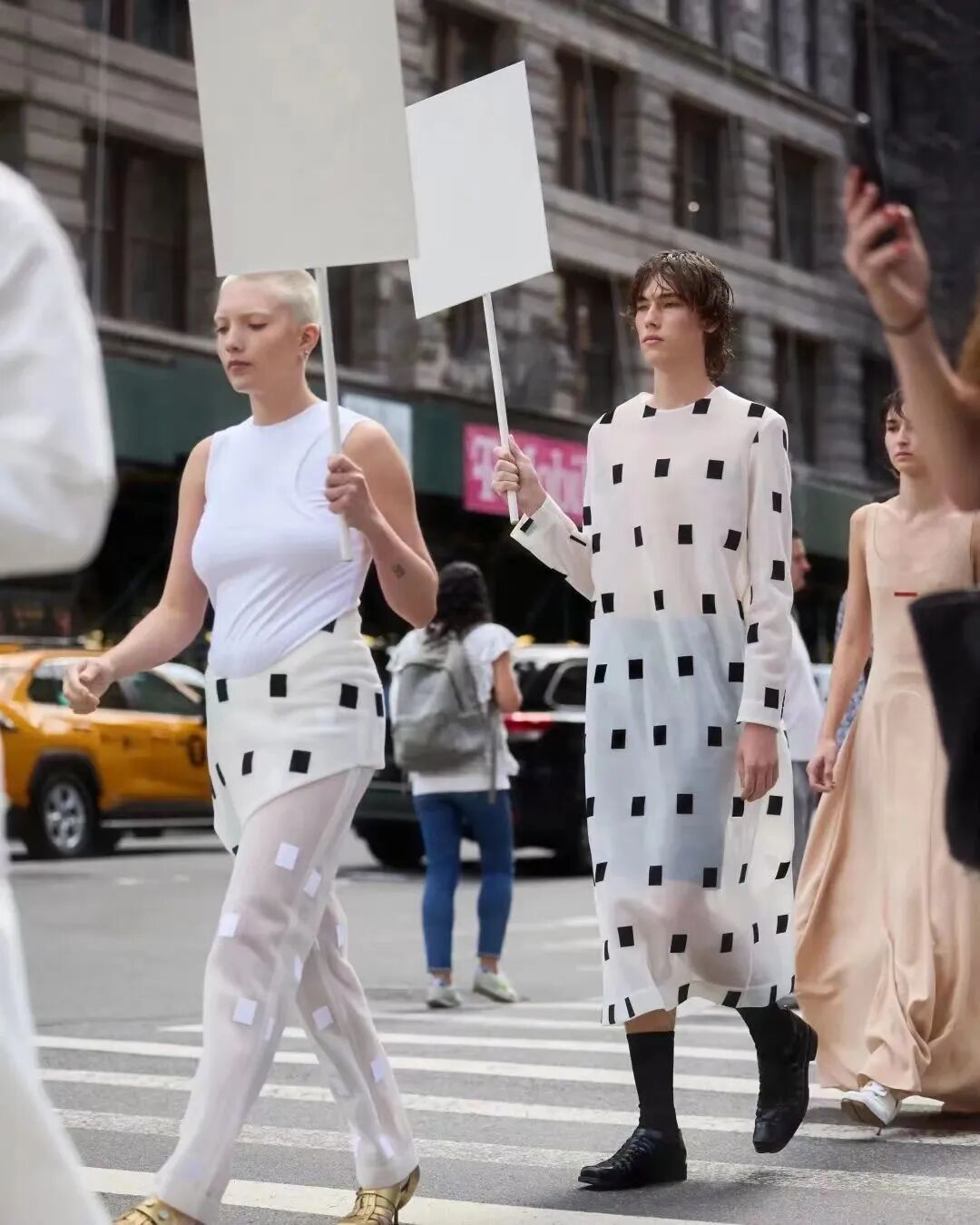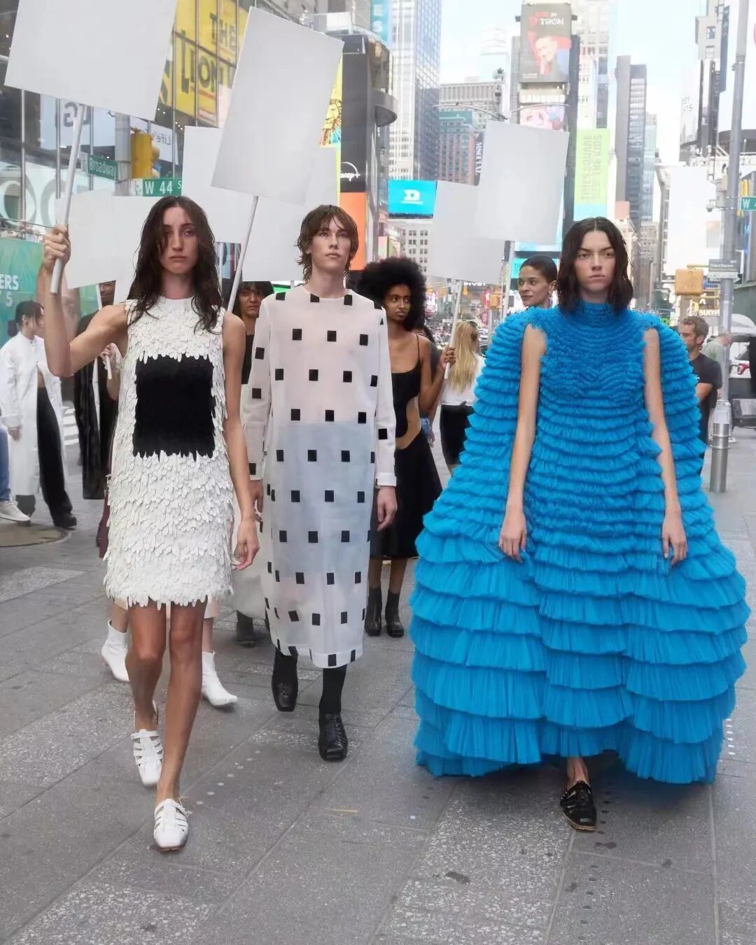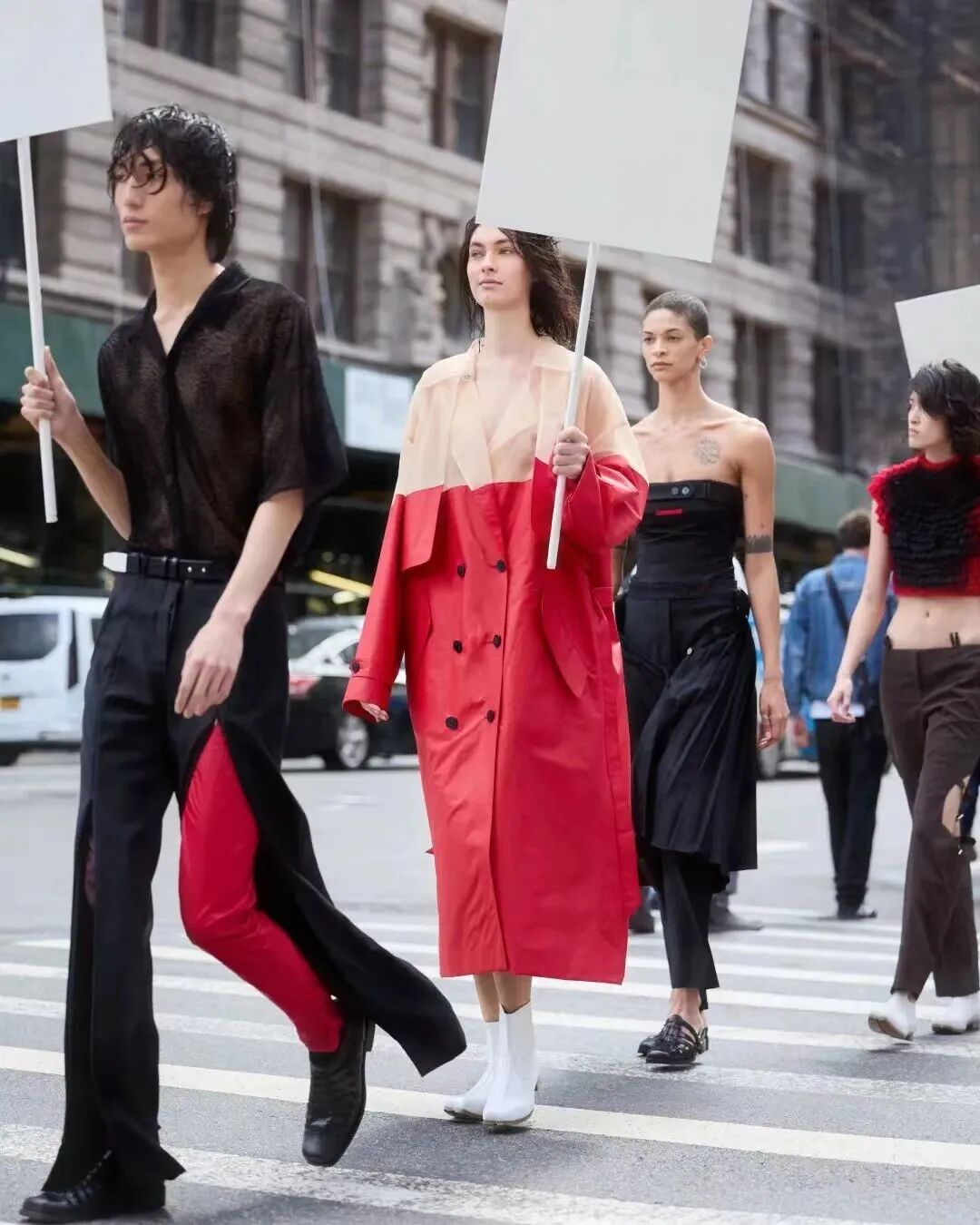 2023春夏系列街头游行秀“那场秀本来的规划并不是在街头,但当时确实因为一些行业中的事情让我们改变了想法,想要发出自己的声音,以相对有意思的形式。于是我们在秀前不到一个月的时间里临时策划,马上重新做research,甚至放弃了一些款式的展示,我们希望去实现这个没有人做过的事情。”