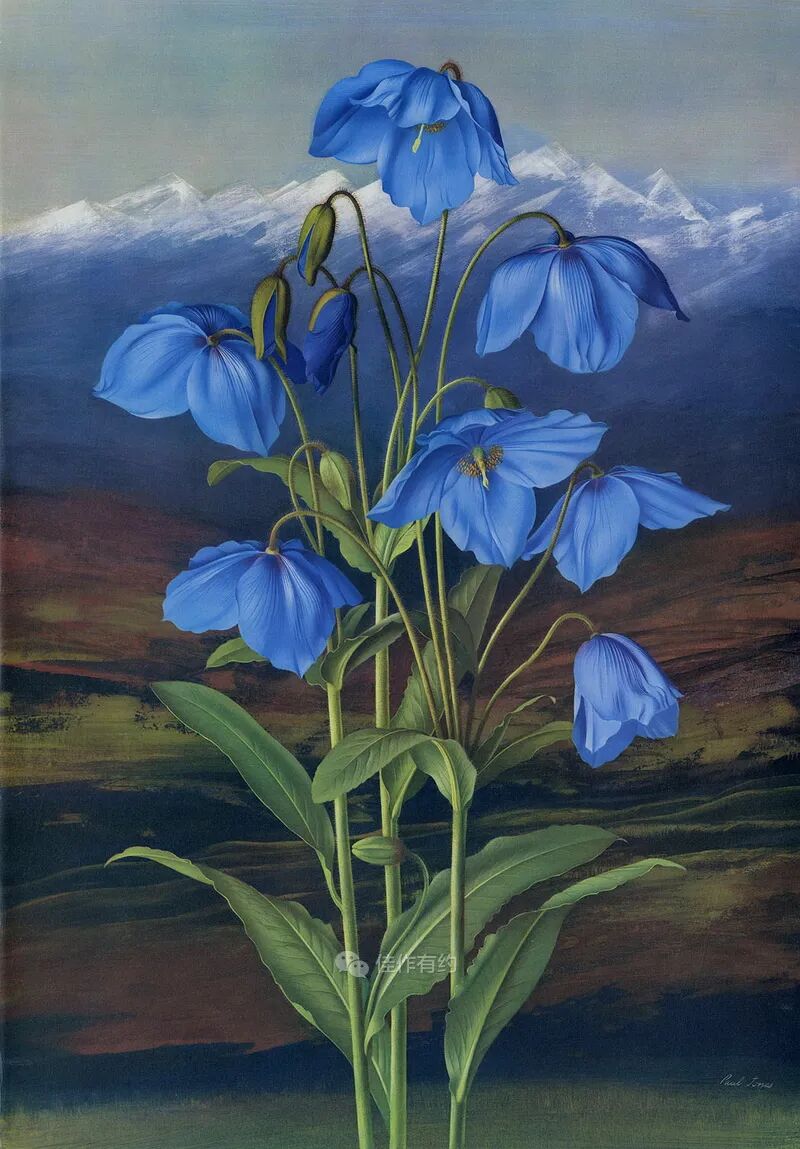 Paul Jones 是一位澳大利亚画家 ,他以非常让人联想到桑顿的植物神庙的方式绘制了这些美丽的植物插图。他的水彩画被广泛收藏在博物馆收藏中,并包含在下面链接的几个有趣的展品中,在牛津的阿什莫林博物馆和华盛顿特区的史密森尼博物馆,他被认为是过去 150 年来最优秀的植物艺术家之一。