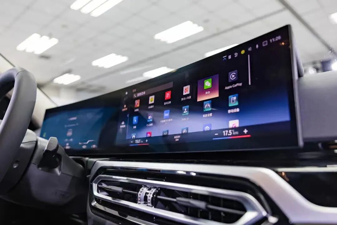 中控台的变化就是两块屏幕的设计了,宝马将原本分体式设计的全液晶仪表和中控屏幕改成为了连体式,中控屏幕尺寸也由原先的10.25英寸升级为了14.9英寸,随之而来的当然还有最新iDrive8的车机系统。