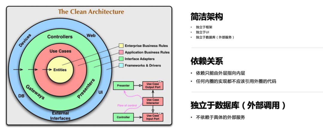 出自《架构整洁之道》,此架构模型是不区分前后端的广义上的抽象架构我们希望每个微服务的代码在微观上也是符合简洁架构。