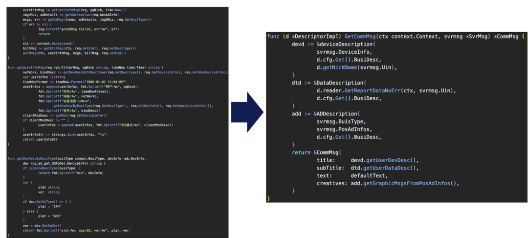 • 服务2全部平铺式的,为什么作者要这么干,因为他写了很多monkey func mock,因为没有抽象,不同函数之间调用导致很多函数的mock需要复用,但测试文件中的内容不支持import,所以为了避免底层逻辑函数要重复在不同包里写mock,干脆平铺了。