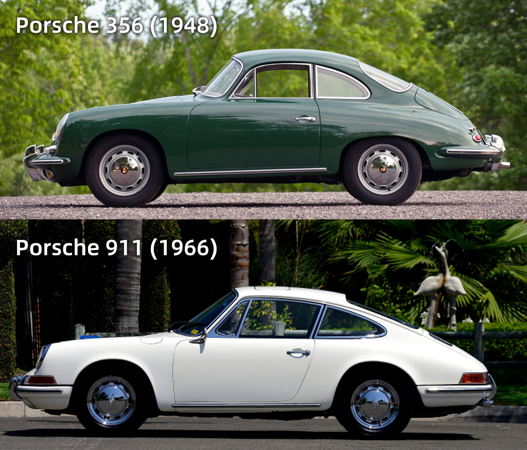 一方面,对于招牌911,他们不轻易变动,以小修小补为主,不改变品牌核心元素(graphic布局),但在比例姿态上集腋成裘,其实已经与最初的样子有了不小的区别。