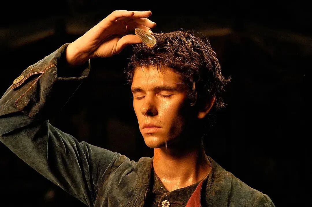 坐在椅子上就会导致玫瑰的消失,以此暗示情感的脆弱与现实。