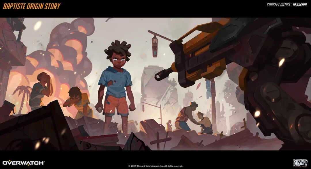 Nesskain从2016年开始以自由艺术家的身份为暴雪服务2年,之后成功入职担任高级2D插画师,至今已有4年之久,他为守望先锋创作了不少英雄背景故事短片原画,其中包括渣客女王、艾什、巴蒂斯特、西格玛、回声、雾子、莫伊拉以及新英雄拉玛刹等。