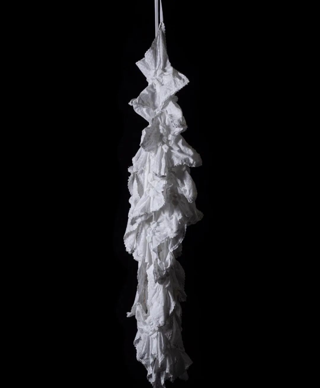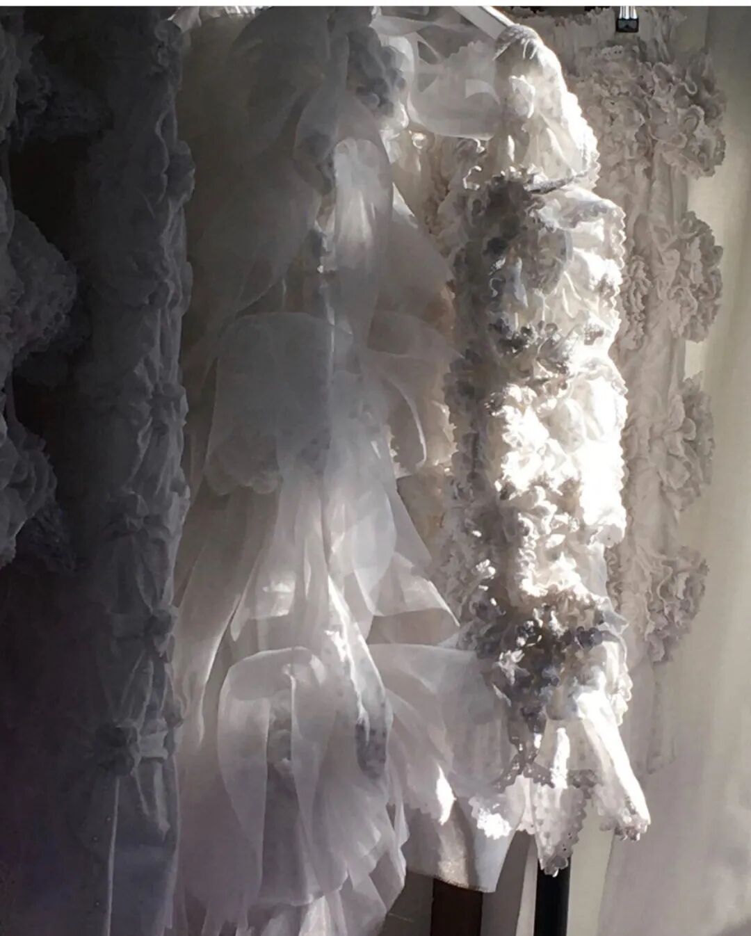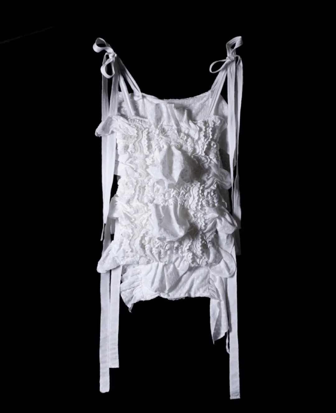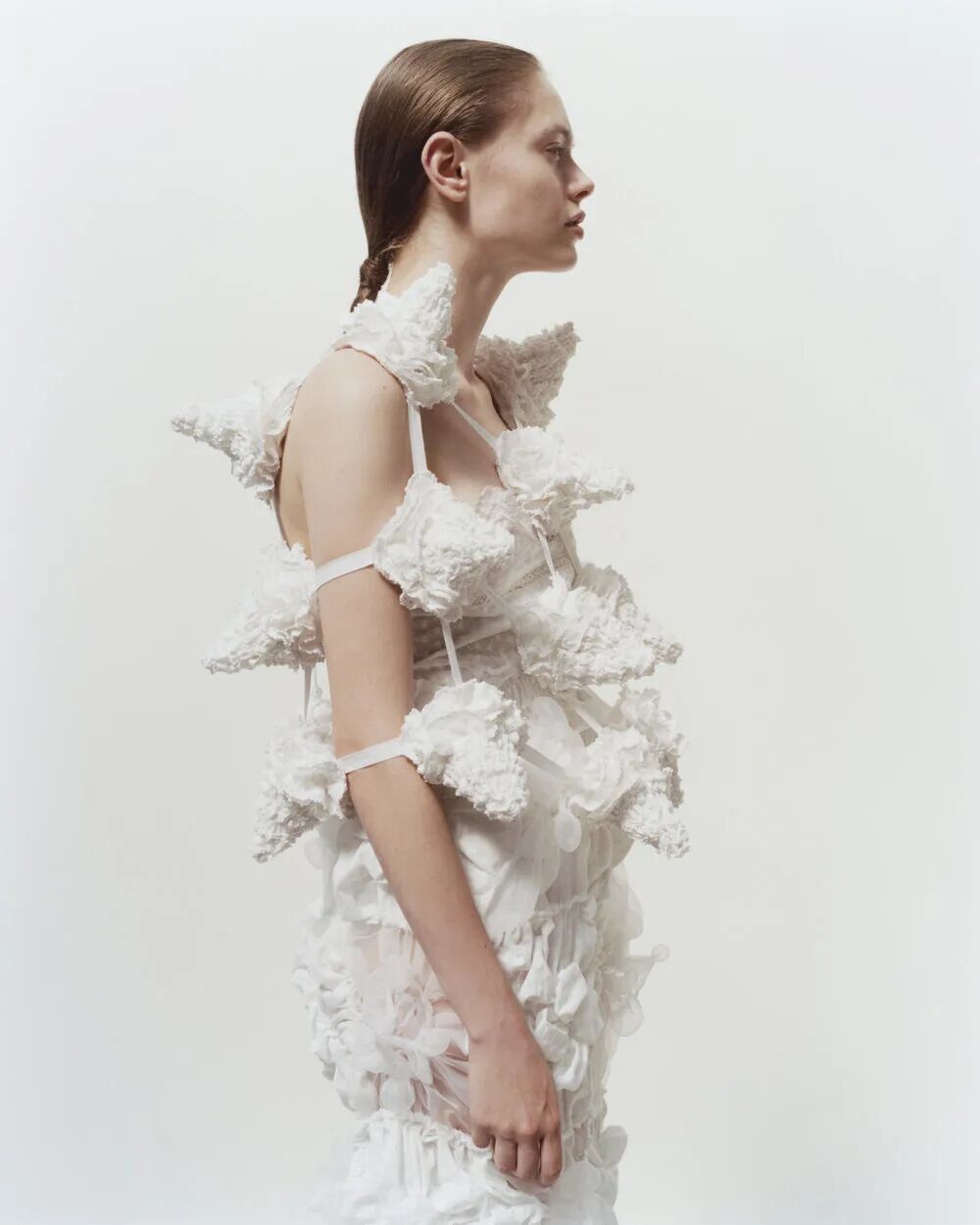 Róisín Pierce精致的抽褶,完全的纯白色调面料以及再造能力很强,灵感来自打破严谨的宗教女性服装,主打零浪费,致力于将创新和手工技术相结合,探索了传统面料手工艺与爱尔兰女性力量的结合与交流。