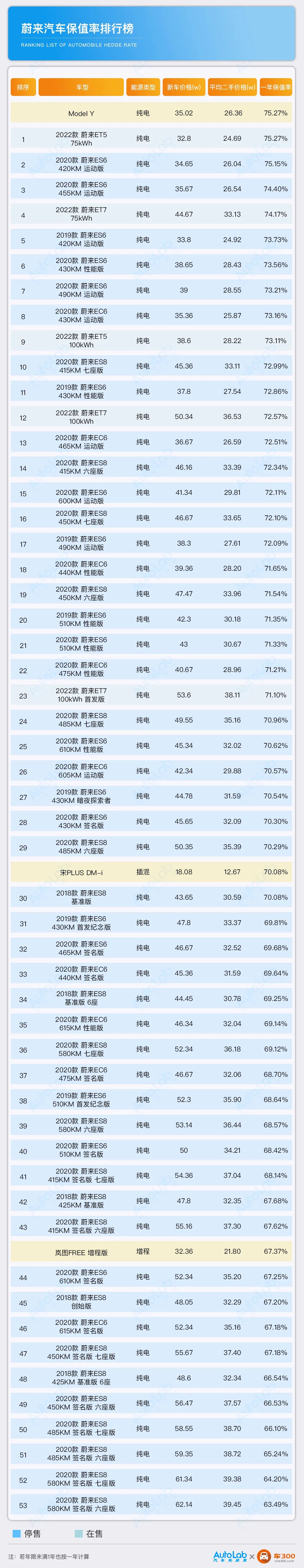 在之前出过的榜单内容里,经常看到有人问:怎么没有蔚来?事实上蔚来的保值率还是非常不错的,但是由于之前榜单的主题限制,所以比较少见。