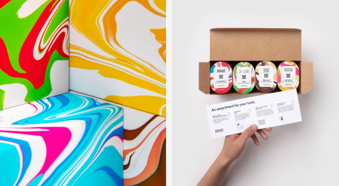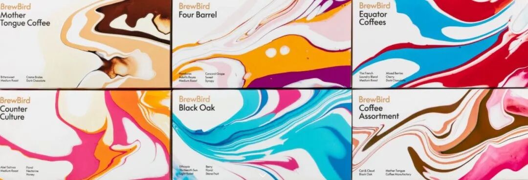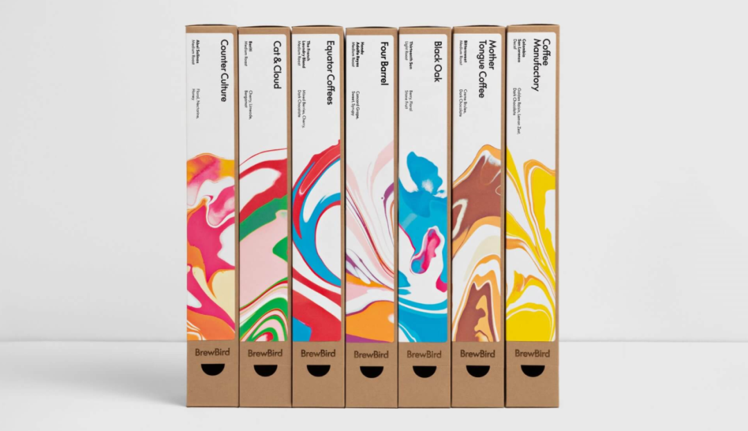 MUCHO设计工作室为其提供一个新的品牌标识和令人难忘的包装系统:巧妙地将两个字母“B”与鸟和咖啡杯结合在一起的新标识,整个标识共同创造了咖啡行业空间独有的活泼、快乐和极其难忘的体验;包装上创造了一种独一无二的丙烯酸涂料流体设计来代表各种咖啡的风味特征。整体包装效果格外的吸睛!