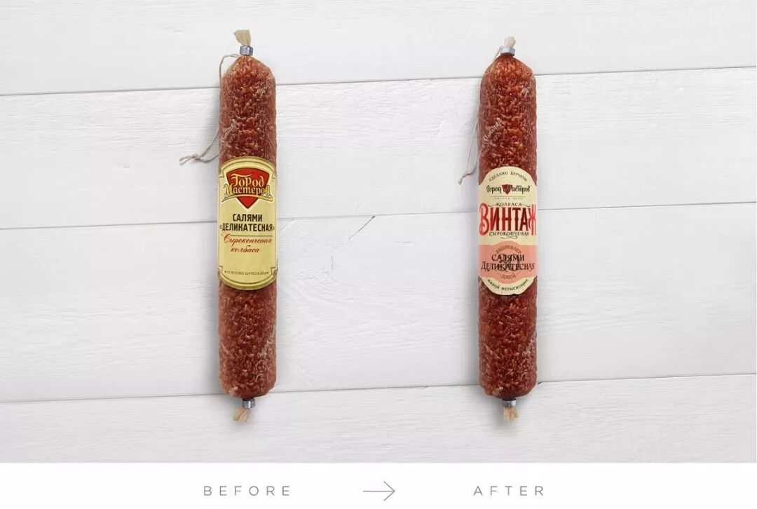 重新设计了版式,增加了标签的色彩,更易区分香肠的品类。保留了历史感,展现了复古的口味。