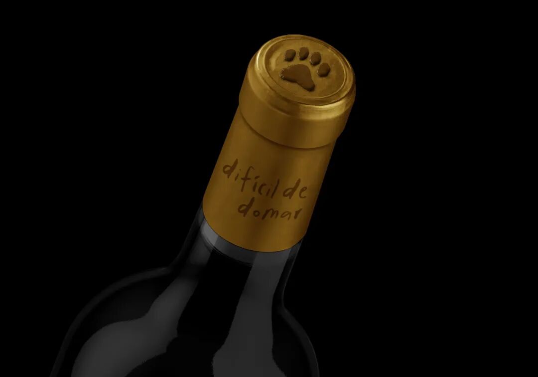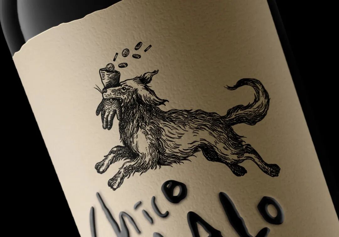 在标签上,可以看到一只狗正在偷一只手套,而手套上在掉落着硬币。这些硬币的用处是奖励给工人的 ,工人每交付一瓶葡萄酒,就会获得一枚硬币。这个表现试图暗指盗窃大量战利品,这么做也只是为了乐趣,因为年轻以及具有冒险和挑战性的个性被赋予在了这支酒上。