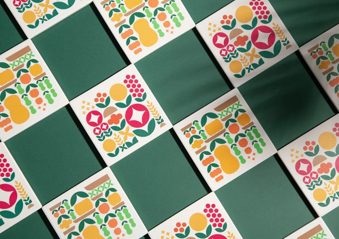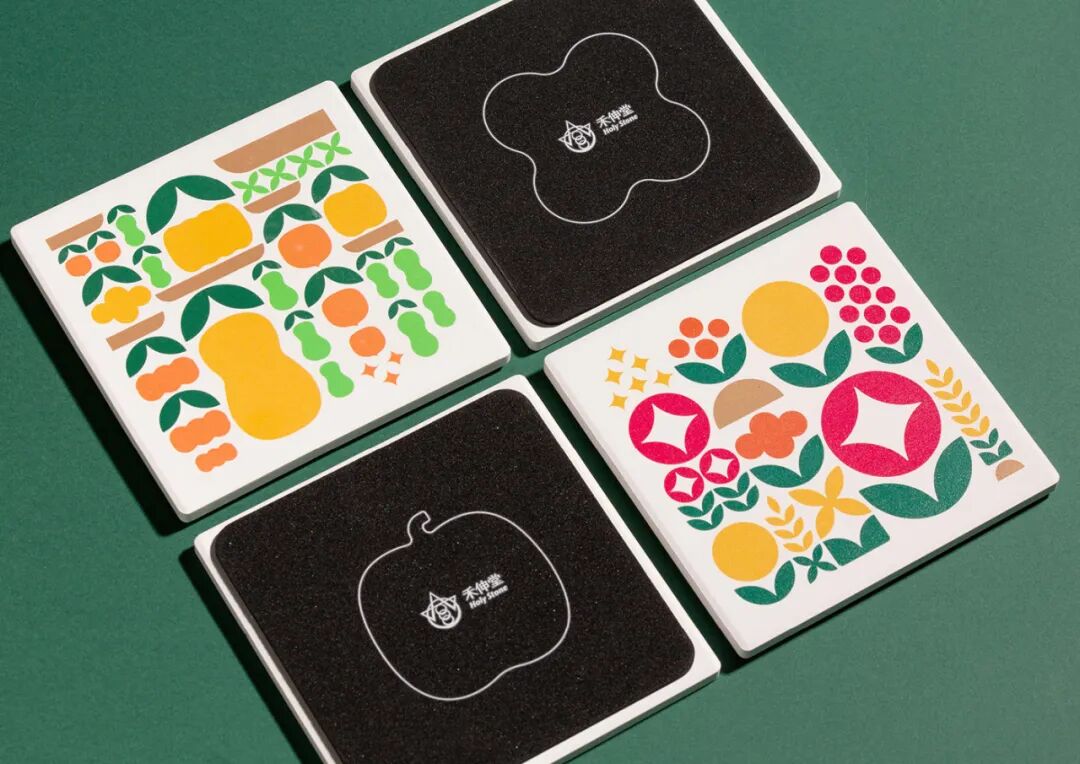 该项目延续禾伸堂往年强调赠品独特性与实用性的设计目标,设计以一组主题为“丰收“的陶瓷杯垫,示意禾伸堂自1981年成立至今,即将迎向40周年的丰硕成果。视觉设定以花、果为主轴,运用高彩度的几何色块。