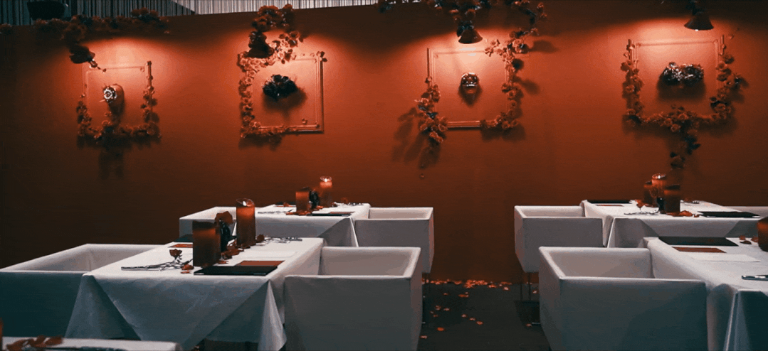 整个餐厅由成千上万多血红色的玫瑰花装饰而成,哥特意味十足的装潢风格和“魔法暗黑”系的分子料理营造出了阴森的氛围感。