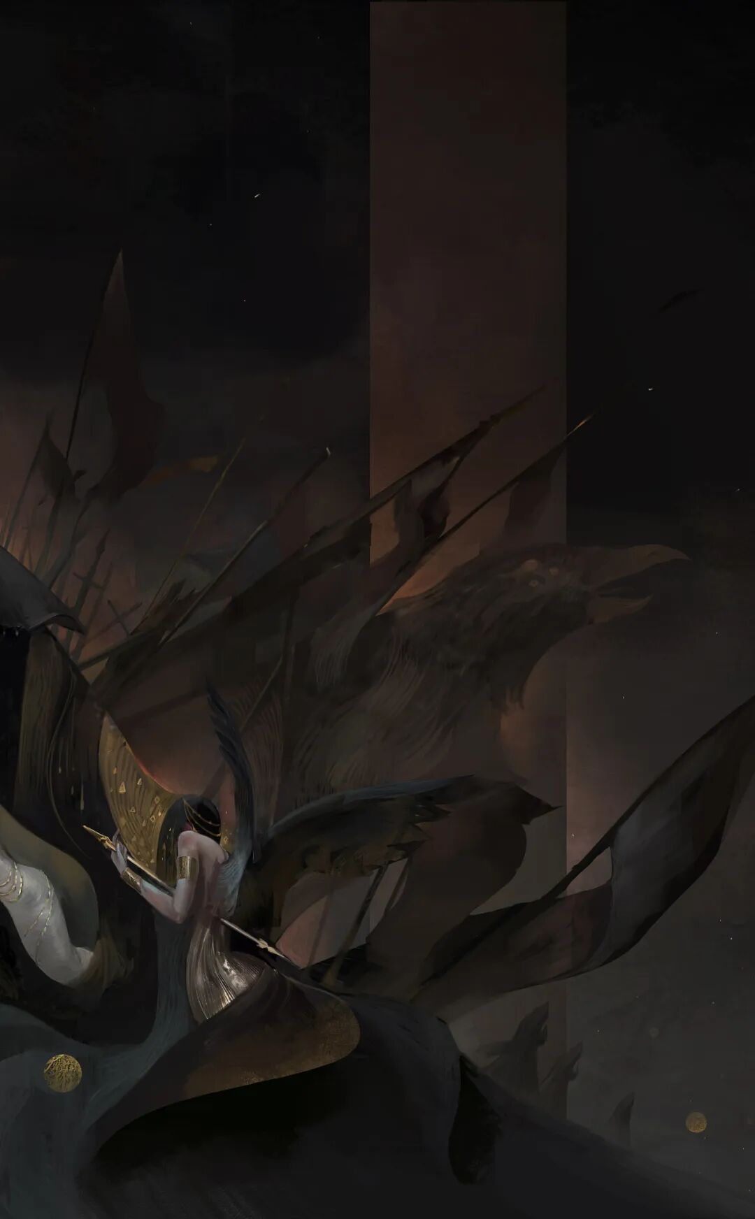 逸之:一方面是受一些阅历的影响,随着年龄的增长,很多东西都不再像童年那么童真了。很羡慕一些能保持住童真和残酷世界这种情感对比的作品,比如宫崎骏老爷子的作品。当然也深受天野喜孝,brom,beksinski ,hr齐格,韦恩巴洛这些前辈的暗黑风格影响。服装圈也很喜欢已经去世的亚历山大麦昆的作品,还有山本耀司。他们对于暗黑美学的阐述让我深深着迷。我记得有句话说的特别好,就是你喜欢的风格里面,藏着你的内心深处,你的阅历,你的经历,这些都会潜移默化影响着你的创作。