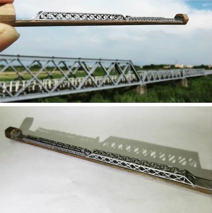李健竹的铅笔微雕的主题涵盖了方方面面,有圣诞元素的圣诞树、拱桥、帆船等等,只有你想不到,没有他雕刻不出来的。很多人看完这位艺术家的作品忍不住感叹,同样都是手,为什么人家可以在铅笔芯上雕刻艺术品,而自己换个笔芯都会不小心折断?