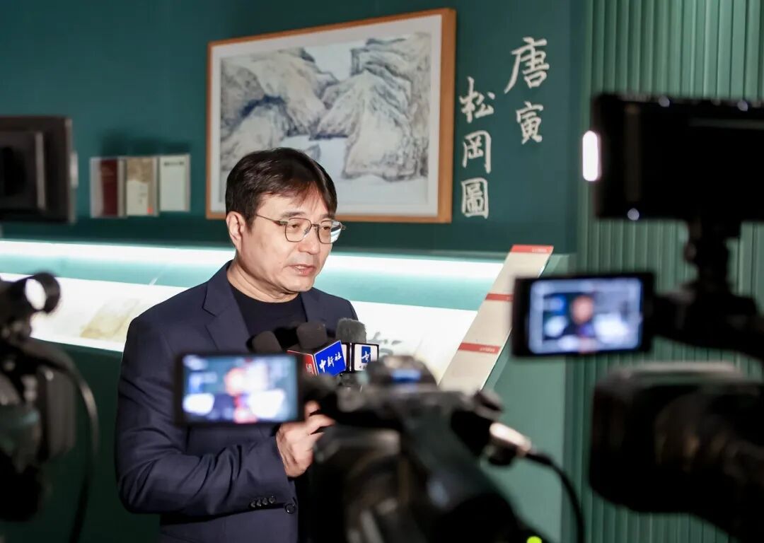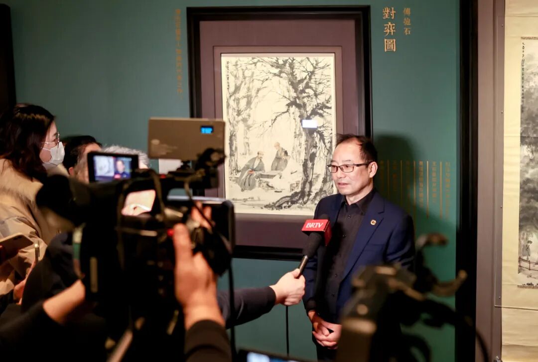 北京保利拍卖古代书画艺术总监李雪松在预展现场接受媒体采访