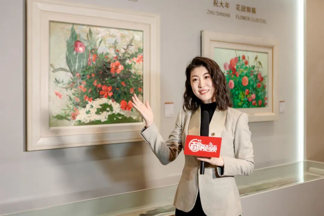 北京保利拍卖现当代艺术部总经理唐丽丽在预展现场接受媒体采访