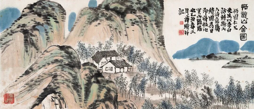 【题识】悟说山舍图。悟园仁兄先生以李白访斛斯山人诗意属缋,异日即将案此买山隐居也。乙丑春正月,齐璜并记。