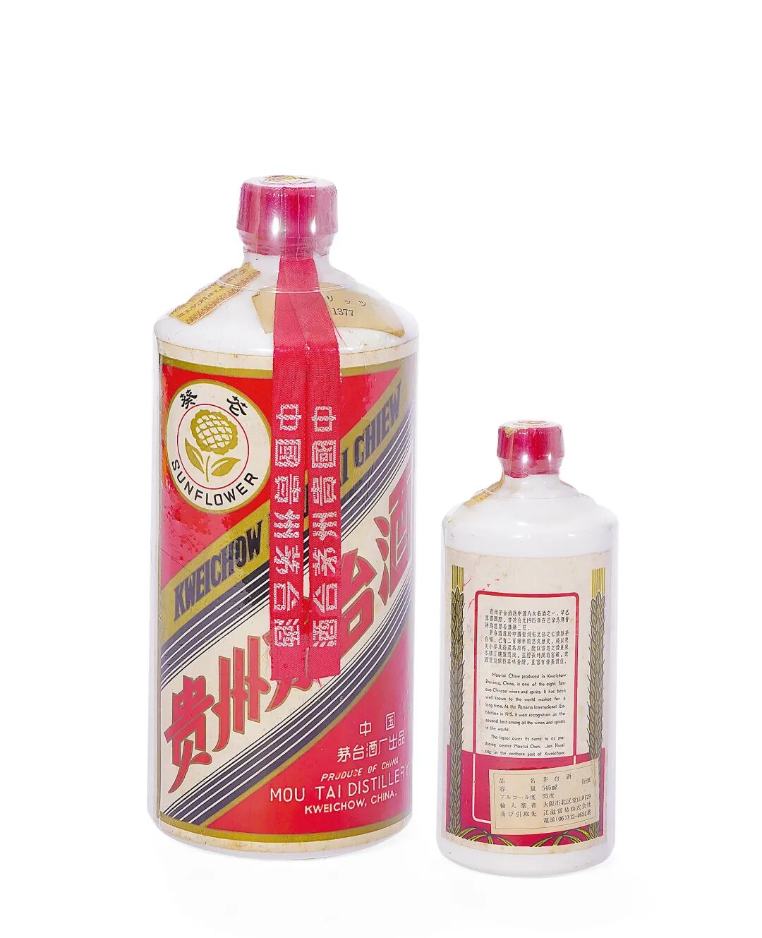 鉴赏:茅台酒出口商标开始为“飞天”牌,又称“飞仙”牌。后为破封建迷信色彩,1970年飞天商标被停止使用,改为有“朵朵葵花向太阳”寓意的“葵花牌”。其后,因更改商标影响了茅台酒在国外的销量,1975年起重新恢复“飞天牌”商标的使用。