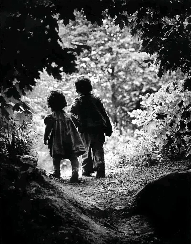 1946年,一对小兄妹手拉手穿过一段林间小路,走向一片阳光普照的地方。穿过花园。他们的背影被尤金·史密斯拍下。他是他们的父亲,曾经的史诗级摄影家,此时他因为战地摄影被弹片所伤,已经两年没有摸相机,以为自己一生都无法照相了。