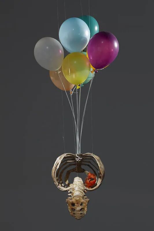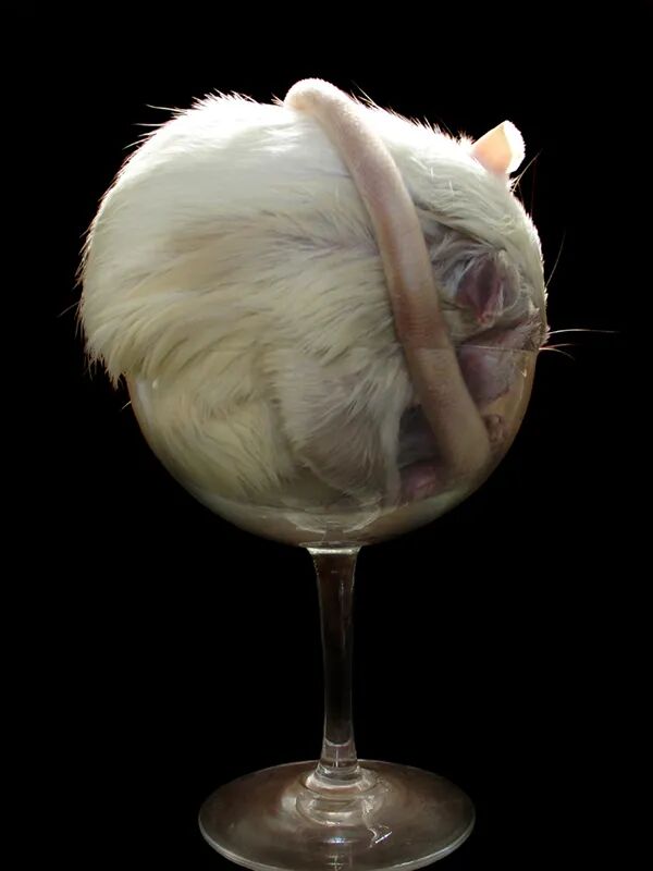 雏鸟从棺材缝隙中探头乞食、去世的小鸡挂着气球升上天空、似乎在红酒杯中安睡的小鼠……