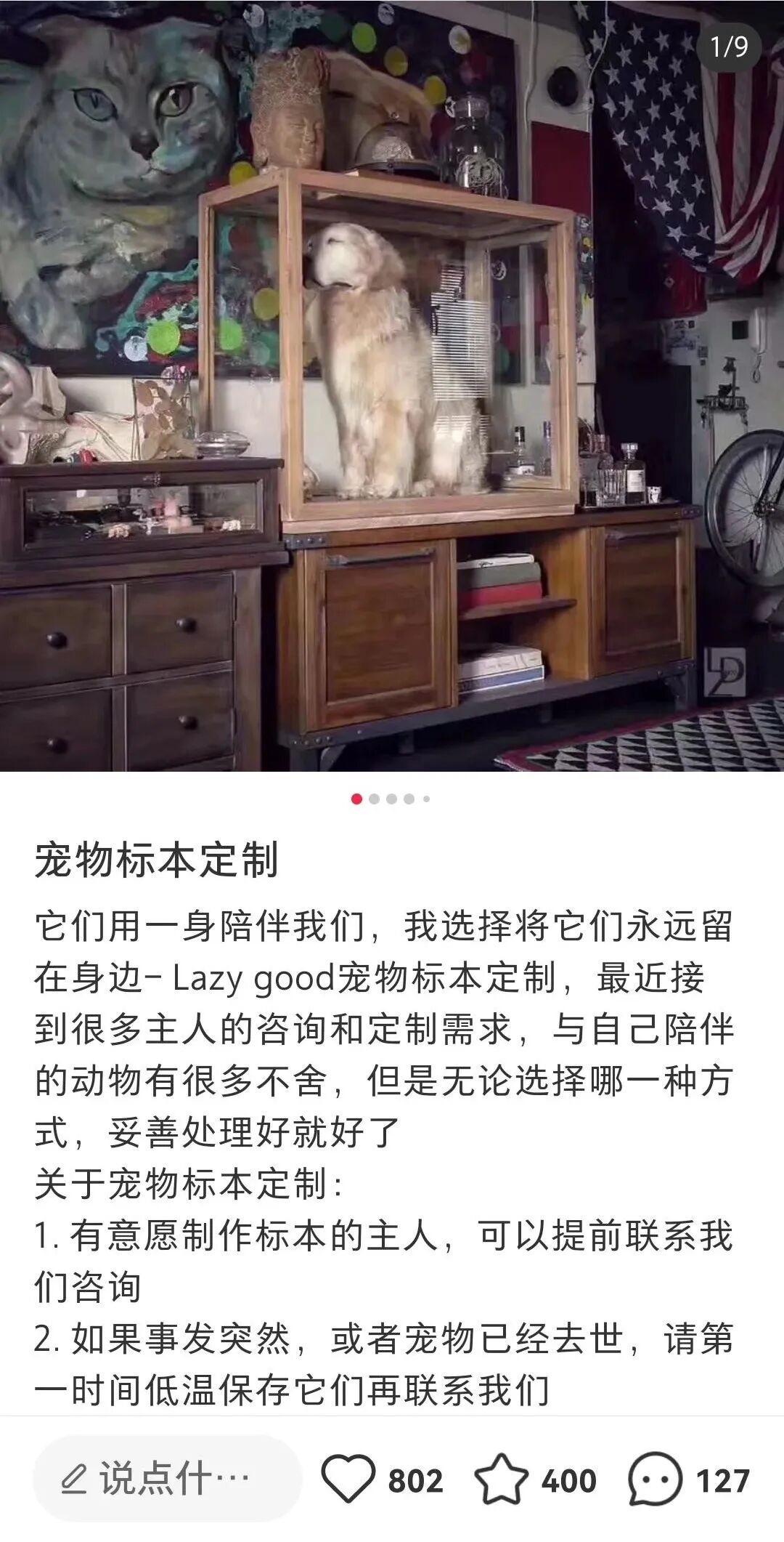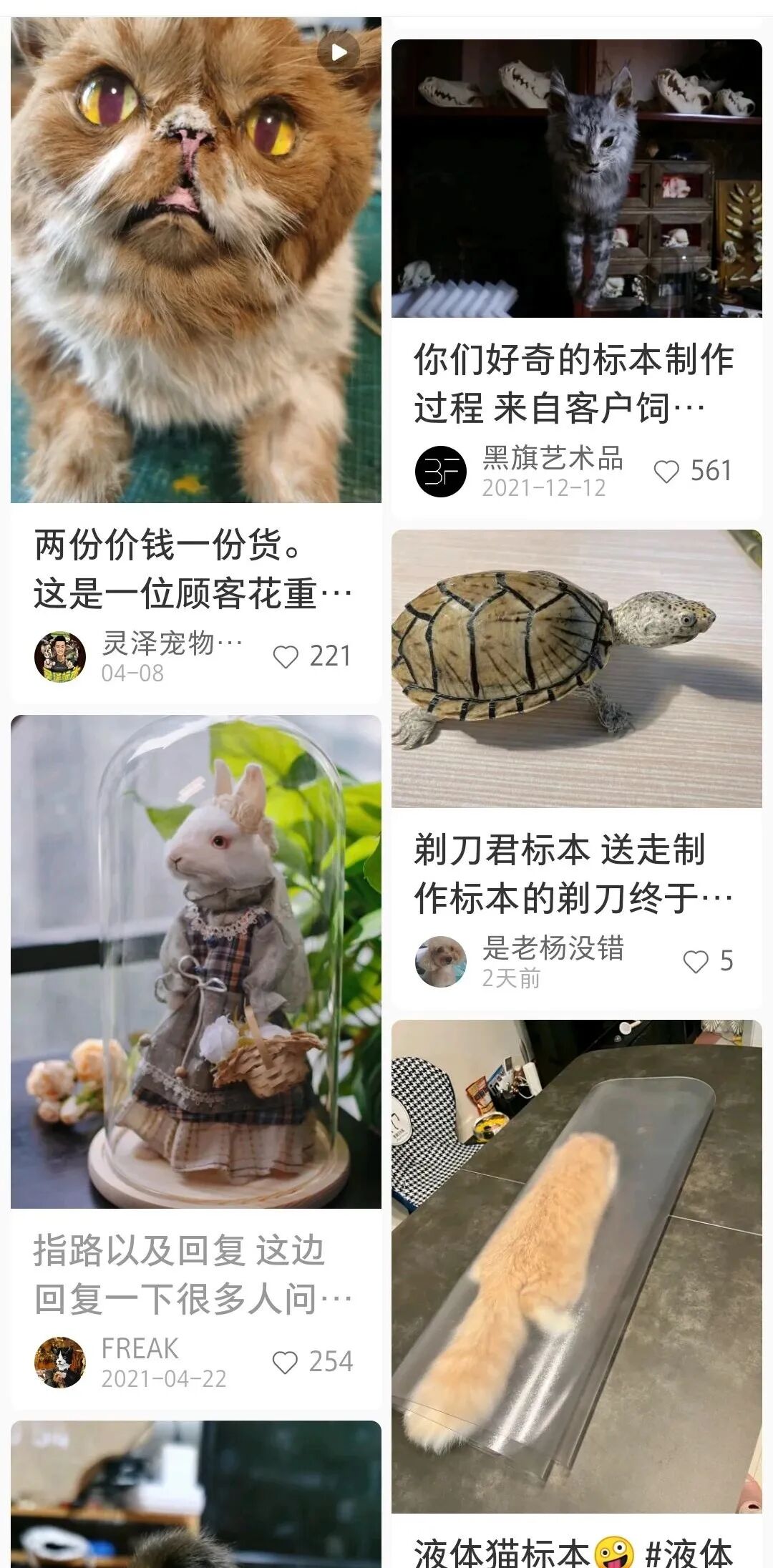 小红书等社交媒体上也能看到关于宠物标本的作品、定制或是主人把宠物做成标本的笔记。