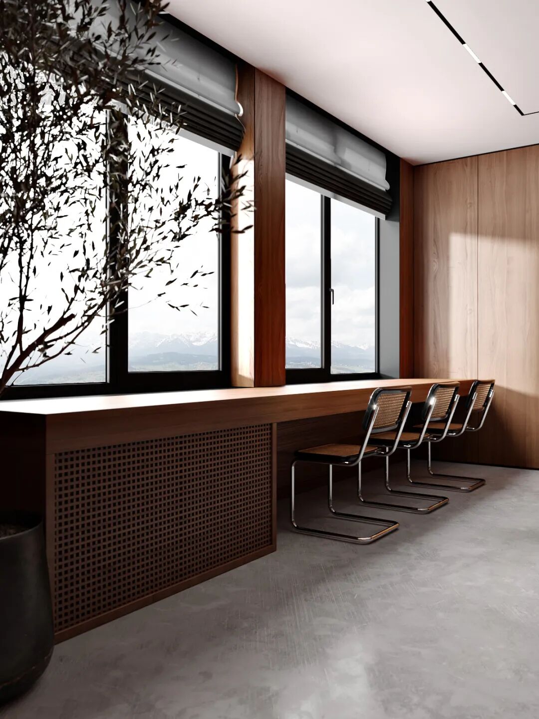 The clean lines in the space show the geometric beauty of the space, increase the storage space, and create a calm and stylish atmosphere.