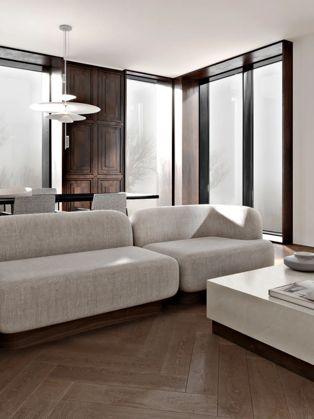 这套简约豪宅将复古艺术与现代设计风格相结合,打造出了一个具有永恒感的居住空间。不同材质的融合恰到好处,给人跨越时空的视觉感受,展现出了别样的空间美感。