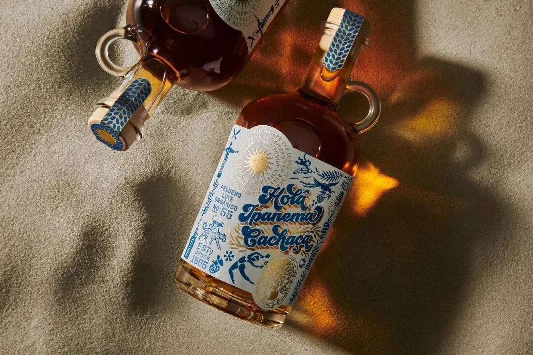 'Hola Ipanema Cachaça' 标签和包装表达了其卓越的精神品质以及夏季巴西海滩派对的活力和生机。该产品是为纸商 Spicers 设计的限量版,以推出他们的 "Marter Ipanema",一种FSC®认证的优质自粘纸。它固有的单面压纹与著名海滩的纹理相呼应,并经过X~dry处理,增强了标签的性能。